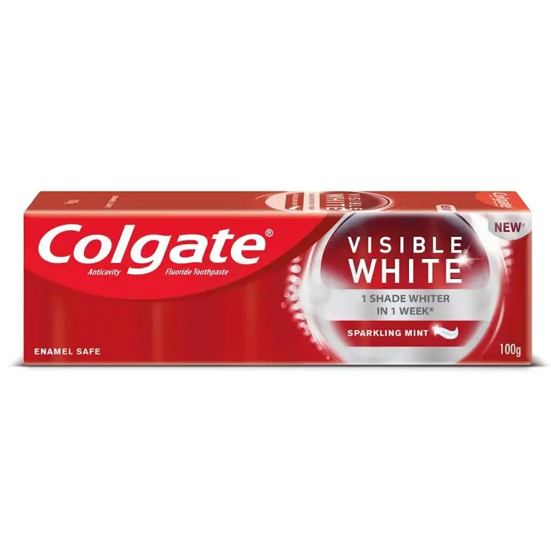 কোলগেটের দৃশ্যমান সাদা টুথপেস্টে ঝলমলে পুদিনা থাকে এবং এক সপ্তাহের মধ্যে দাঁত সাদা করে। এটি একটি অ্যান্টিক্যাভিটি এবং ফ্লোরাইড টুথপেস্ট। এটি নিরাপদে দাঁতের দাগ দূর করে এবং দাঁতকে আরও সাদা করার জন্য পালিশ করে।