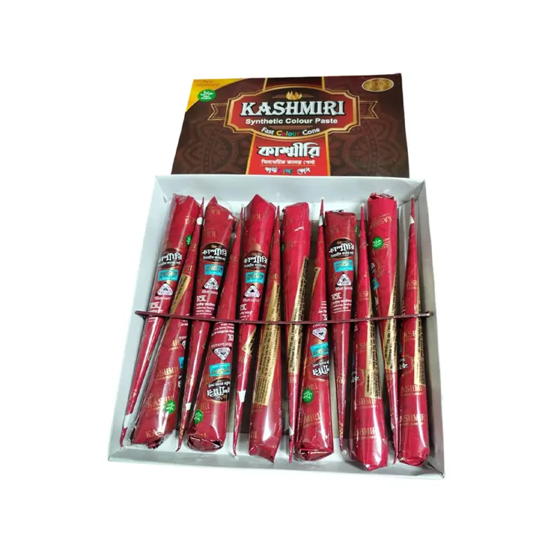- It is famous for its quality and long lasting Color. It is safe to use on skin.Kashmiri Fast Colour Cone Mehendi polish made up of Henna Extract and colors like henna on your skin.Our offered Kashmiri Fast Colour Cone Mehendi is widely appreciated by our clients which are situated all round the nation.We offer Kashmiri Fast Colour Cone Mehendi at most affordable prices.
