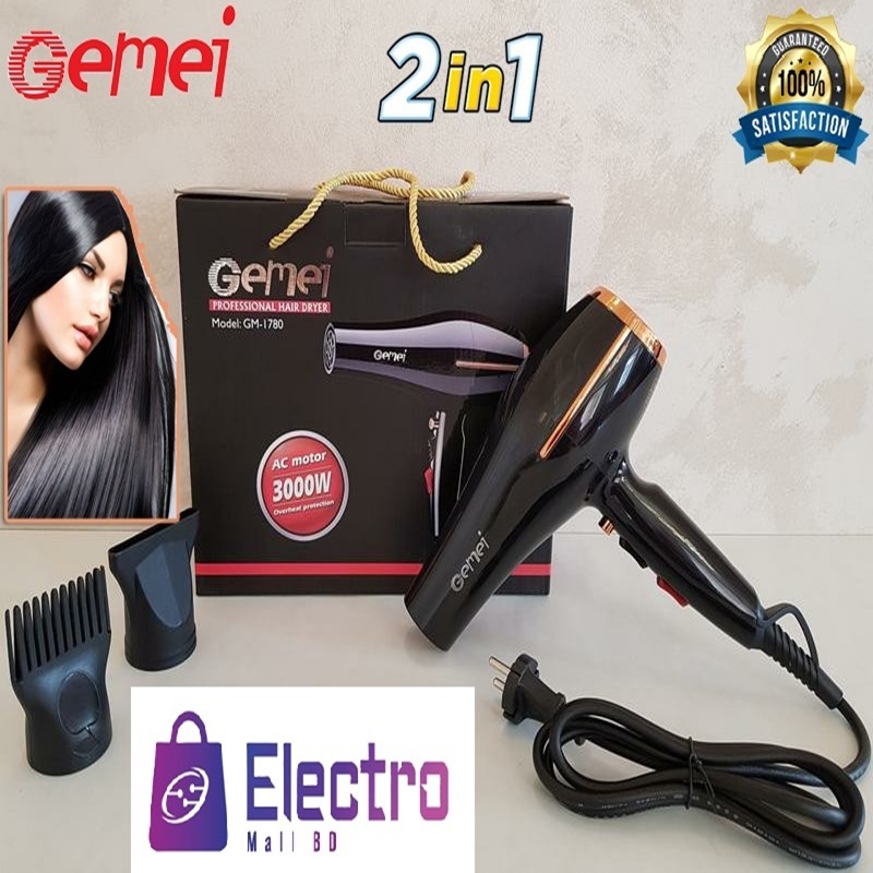 💨 Gemei GM-1780 Professional Hair Dryer – 3000W (Black)