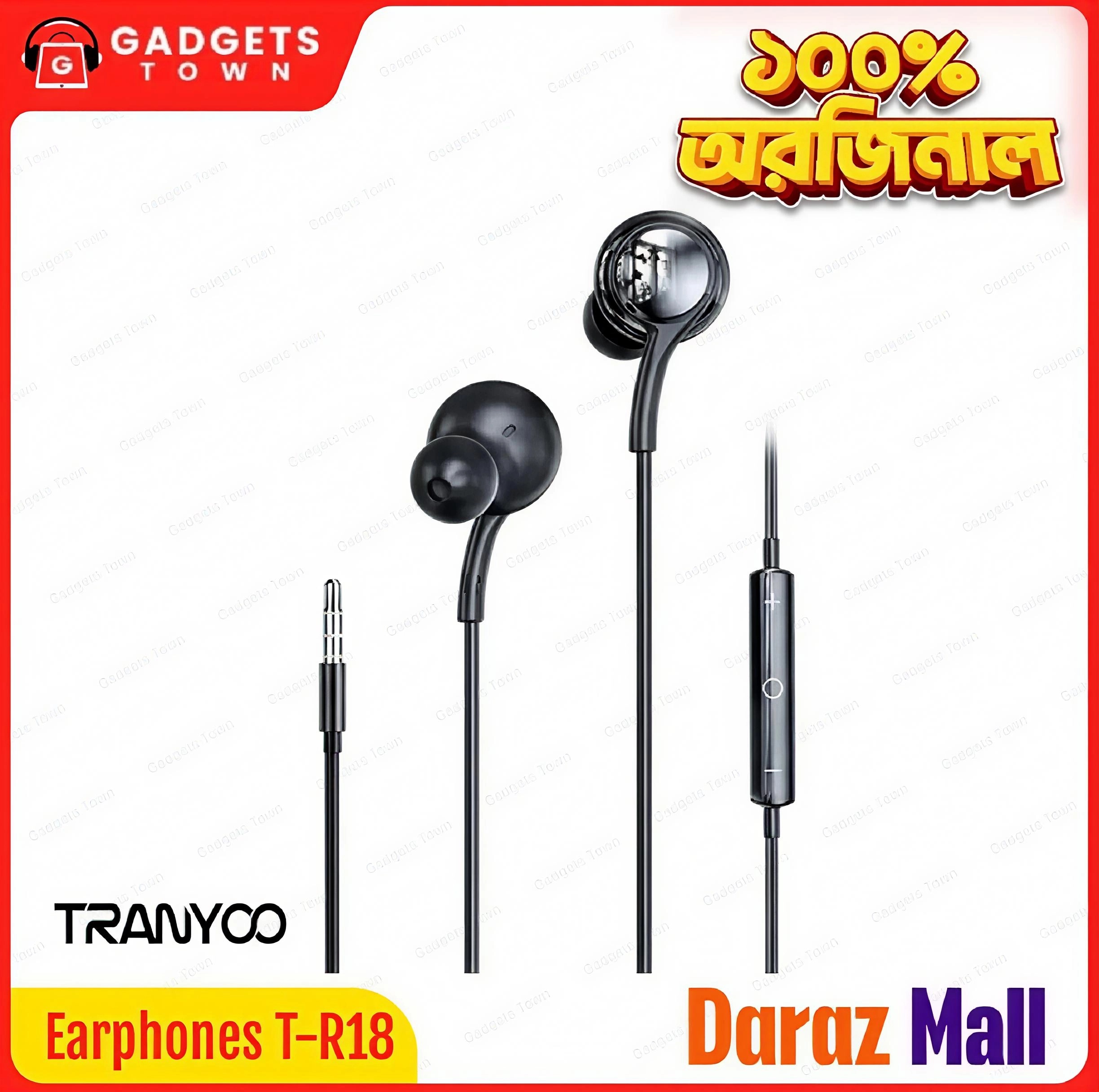 The Tranyoo T-R18 Wired Earphones deliver high-quality audio for everyday listening in Bangladesh. Featuring a 3.5mm wired connection, they are compatible with virtually all devices equipped with a headphone jack, including smartphones, tablets, and laptops.