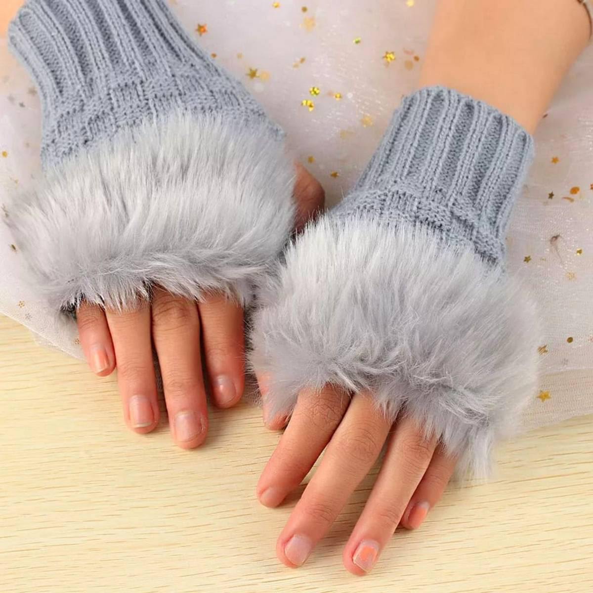 🧤 Fashion Faux Rabbit Fur Fingerless Gloves (1 Pair)
