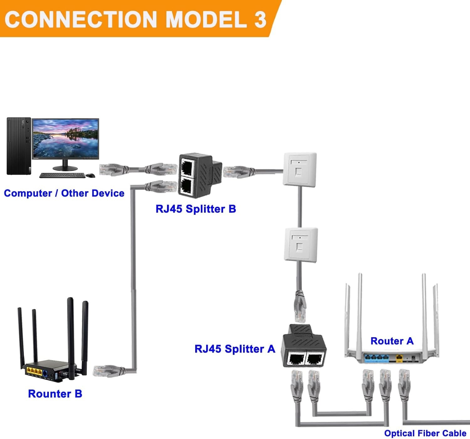• Package includes 1 RJ45 Female Splitter