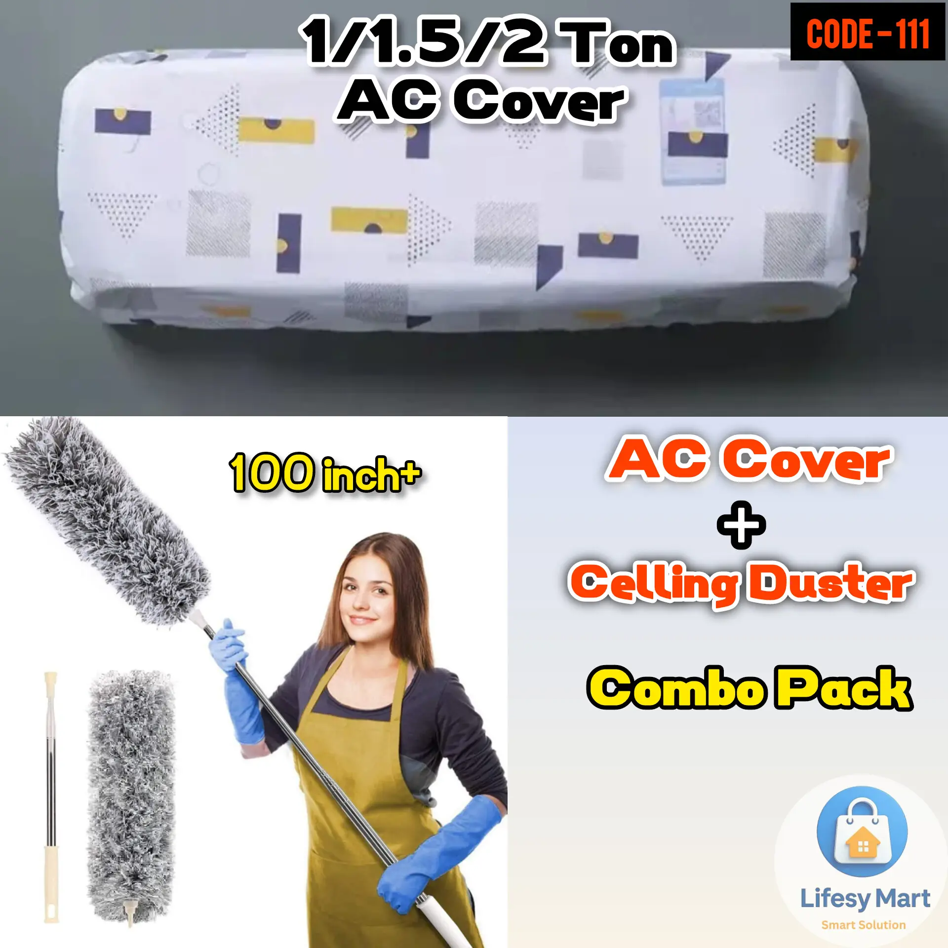 এই কম্বো প্যাকটি অন্তর্ভুক্ত করে Adjustable Washable AC Dust Cover এবং Flexible Microfiber Duster, যা ঘরকে পরিষ্কার, সুরক্ষিত এবং শীতকালে আরামদায়ক রাখতে সাহায্য করে।