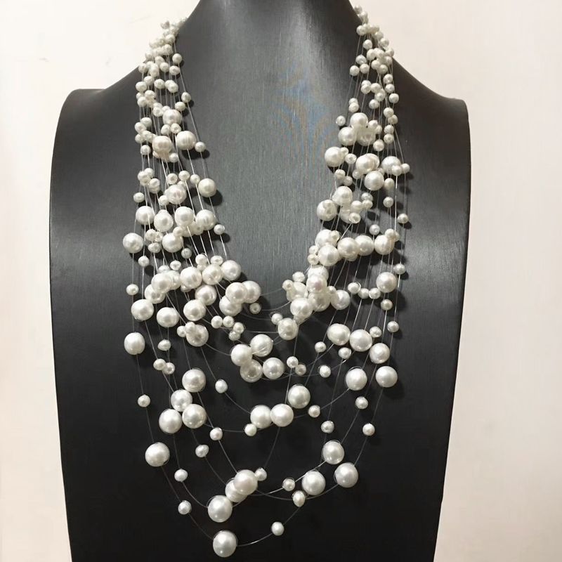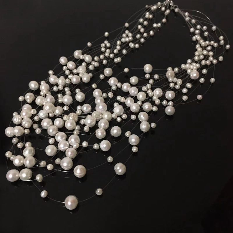 10 Layer Transparent String Pearl Necklace Multi Layers For Women Fashion Jewerly Wedding Party Night Dress.