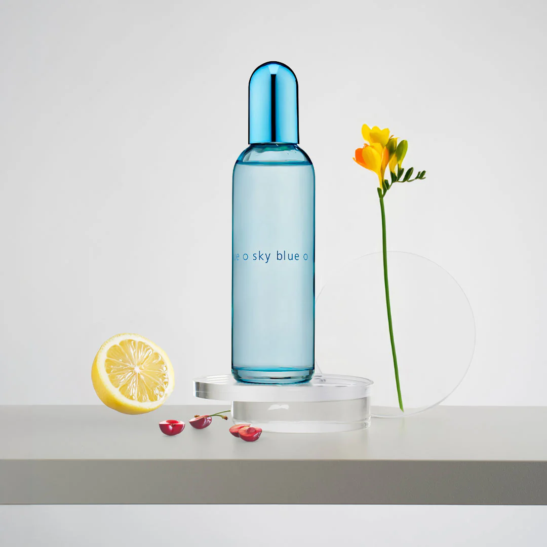 Colour Me Femme Sky Blue - Sensual, feminine and floral. Get those summer vibes all year round with Colour Me Sky Blue. Fresh and fruity top notes are enhanced by a distinctive underlying base of jasmine and rose, resulting in a truly uplifting perfume for women. A very sensuous, feminine fragrance with complex topnotes of sparkling citrus lemon, soft juicy fruits of cherry and peach, enhanced by diffusive floralcy of peppery summer freesia. The rich floral heart of jasmin, green floral muguet and velvety roses is scintillating.