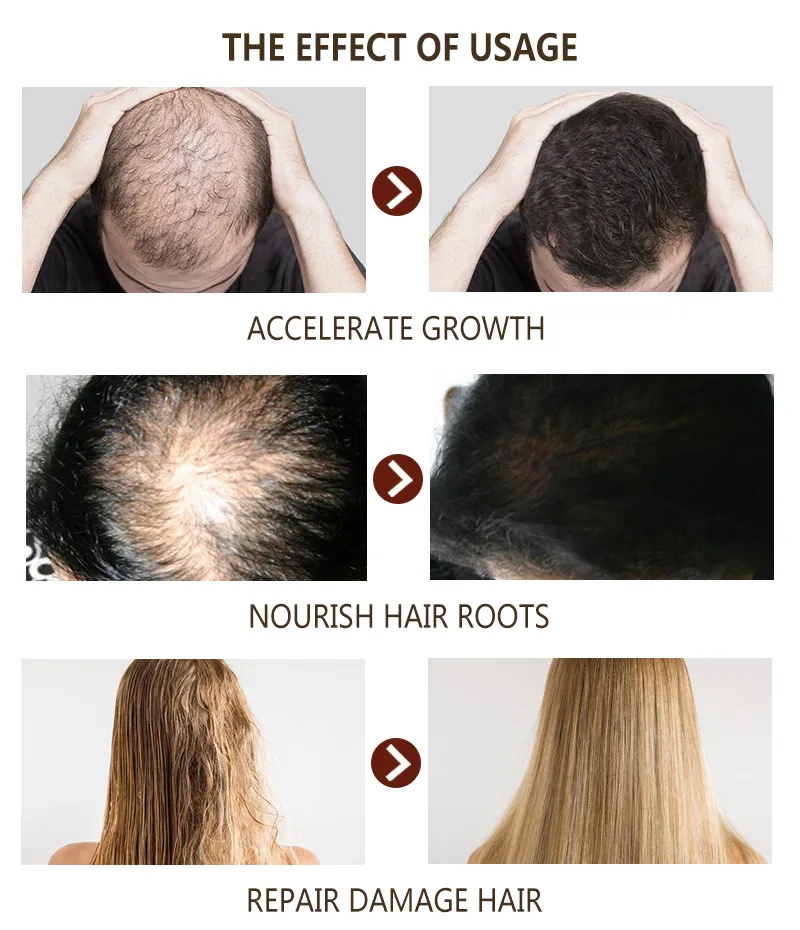 - This product is made of natural extracts that are safe and healthy for the scalp. It can make hair grow 2-3 times faster than normal, and promote hair growth 7 times more. Make hair thicker and stronger so that the hair becomes smooth and healthy.