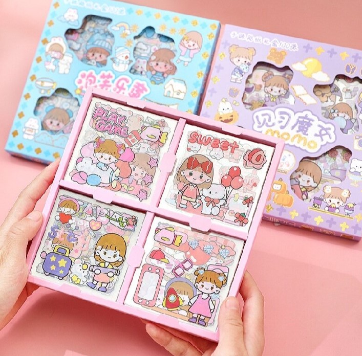 100 শীট সুন্দর কার্টুন মোমো ওয়াটারপ্রুফ পিইটি ডায়েরি ডেকোরেশন কিউট প্যাটার্ন ডাই কাট স্টিকার, ডিআইওয়াই ডেকোরেশন স্টিকার