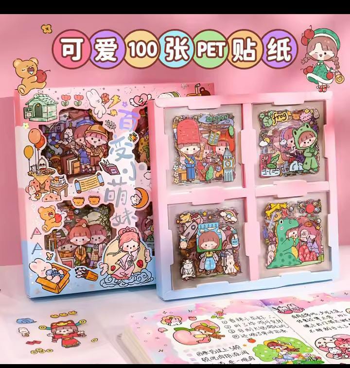 100pcs PET Hand Account Stickers Gift Box Set Guka Stickers Children's Gilded Decorative Stickers