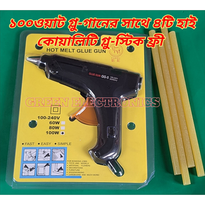 Combo Pack 100W Hot Melt Glue Gun With 5 Glue Stick, 100 Watt Glue Gun For Diy Art Crafts, Joint Repair
