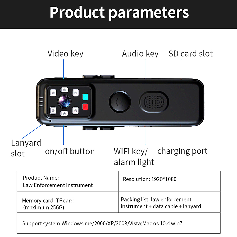 - 8. It supports memory expansion and can record more important information. Maximum 256G memory card storage is supported.