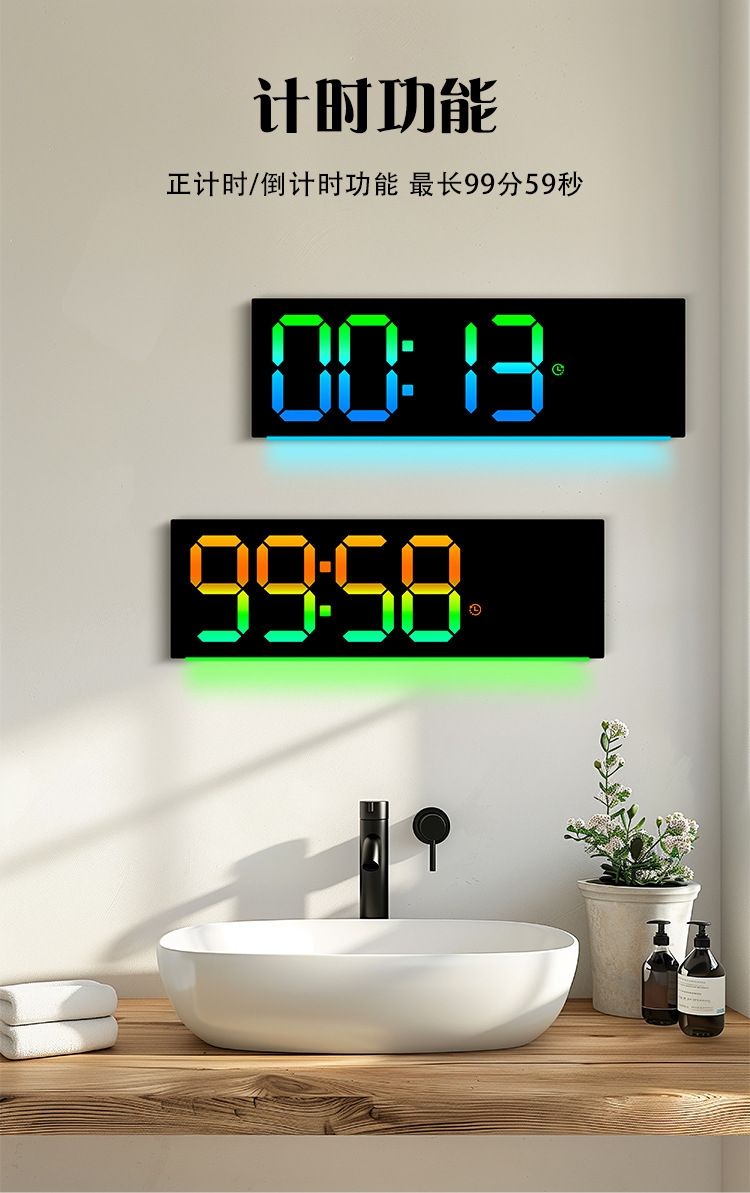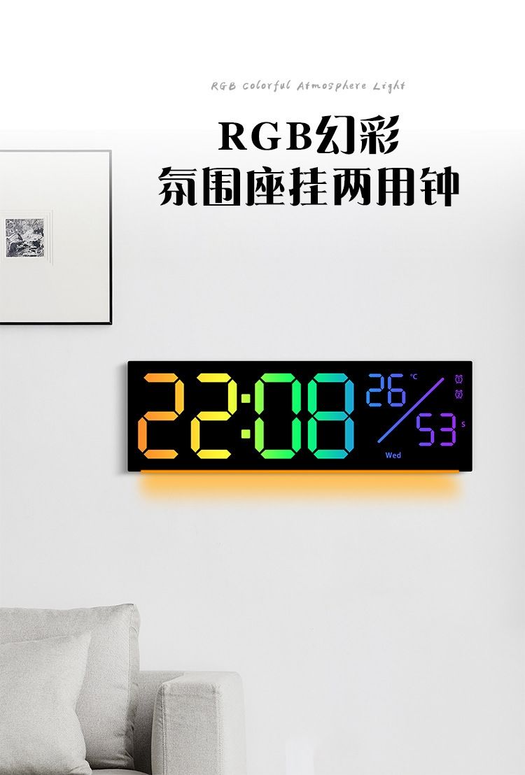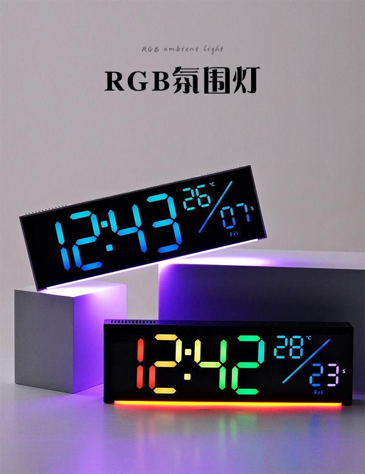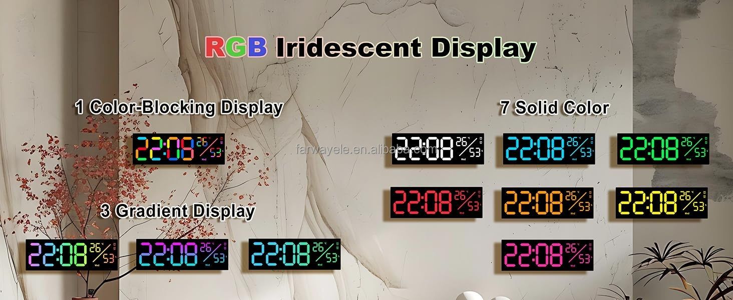 This 11" RGB digital LED wall clock is 11 color mood. You can change display color by using remote and button. Also this clock has an LED ambient night light that can also be changed to 9 colors. It has a big LED display with big numbers that help to read easily from a distance. Also, this RGB wall clock uses a remote, which makes it easy to maintain color, alarms, and brightness settings. Moreover, this clock shows time, date, day of the week, and indoor temperature.