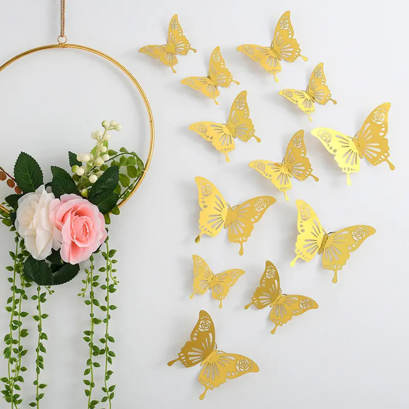 Add a touch of elegance and charm to your home, party, or event with this 12 PCS Gold 3D Butterfly Wall Sticker Set. These stylish hollow-design butterflies are lightweight, easy to apply, and perfect for decorating walls, cakes, or gift packaging. Whether you're hosting a wedding, birthday, or simply refreshing your room, these butterflies will bring a magical atmosphere anywhere.
