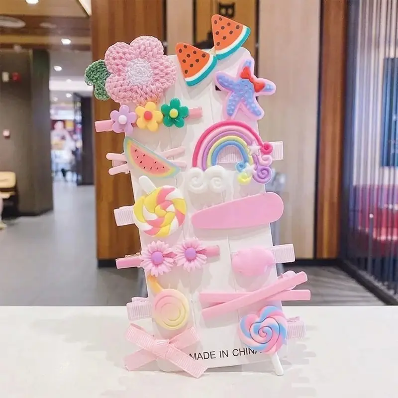 Quantity: 1 Clip Set, in 1 set there is 14 Piece Clip Style: Korean Hair Clip Set for Baby Girl Material: High Quality Plastic + Fabric Color: Beige, Pink, Yellow, Blue Usage:Baby girls Hair Accessory Occasion:wedding gift, party, daily use etc... Type :Simple Hair accessories Tips: Best Gift For Birthday Style:Fashion Product name:Hair clip set Material:Plastic +Fabric Color:Multi Usage:Baby girls Hair Accessary Occasion:wedding gift,praty,daily etc... Type:Simple Hair accessories