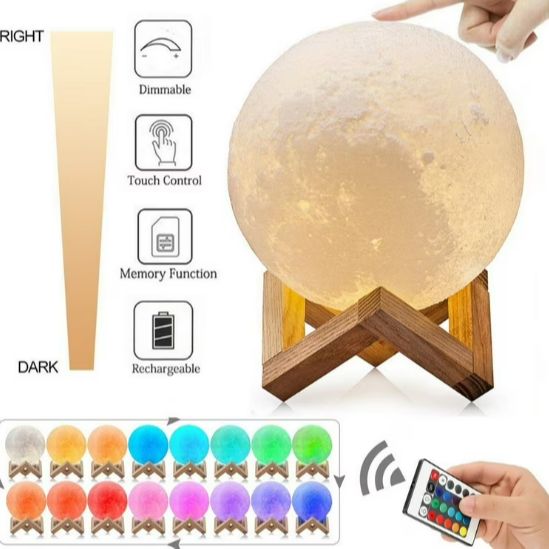 6 Colors Touch and Remote Control Rechargeable LED Night Light 16 CM 3D Print Moon Lamp Touch Color Change 3D Light Touch Moon Lamp Children’s Lights Night Lamp for Home