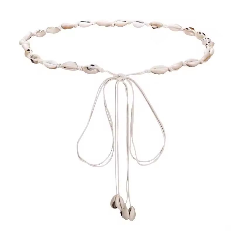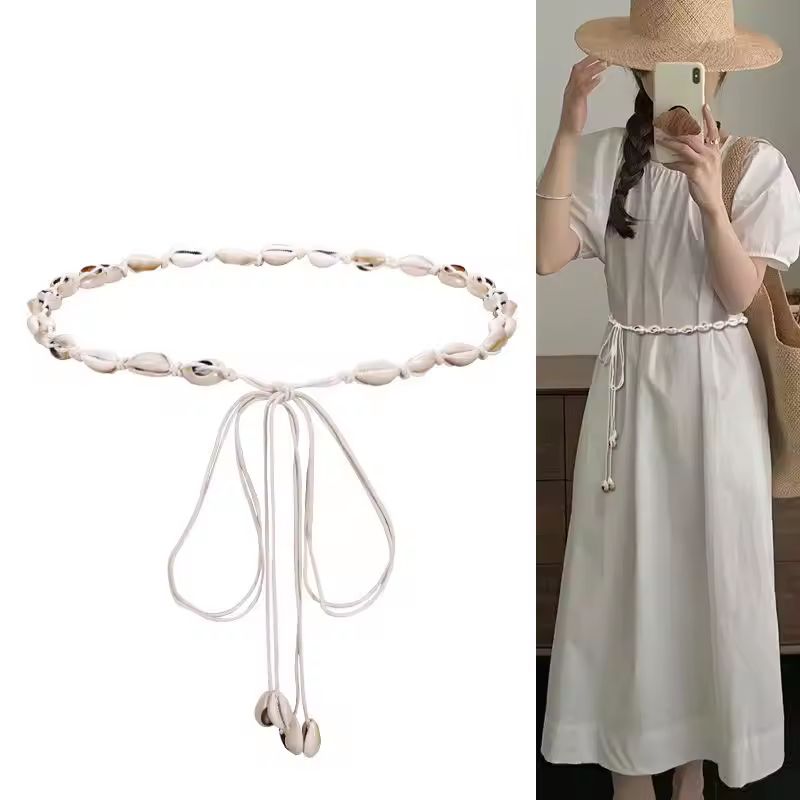 170 cm Women's Bohemian Ethnic Style White Shell Thin Waist Belt Summer Accessory Decorative Straps Lady Dress and Woven Waistband Ropes