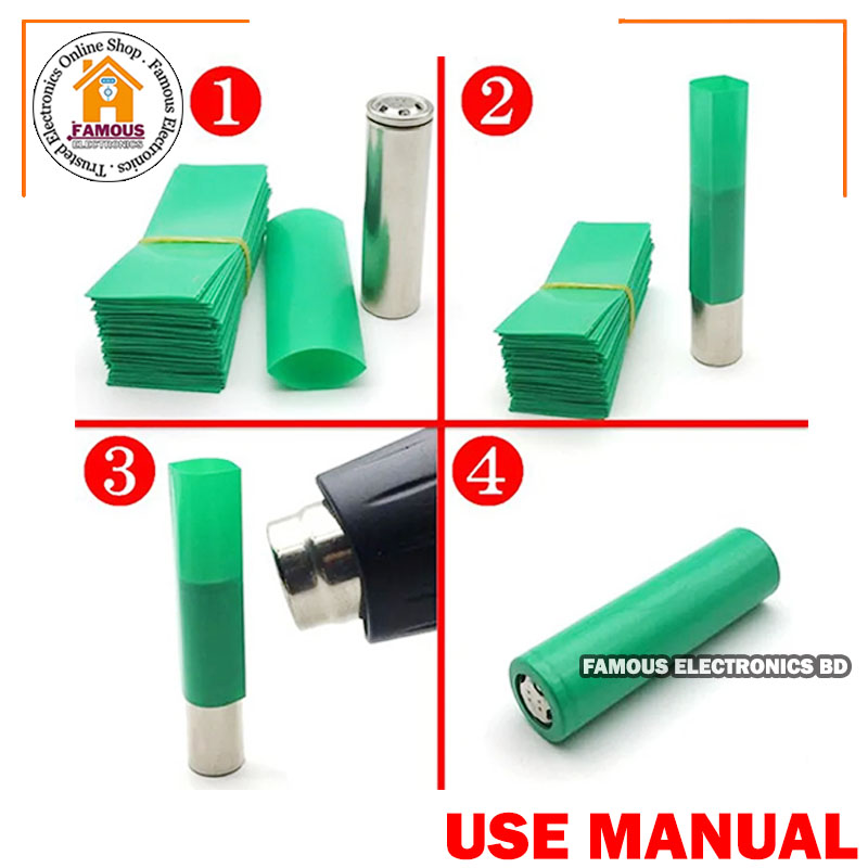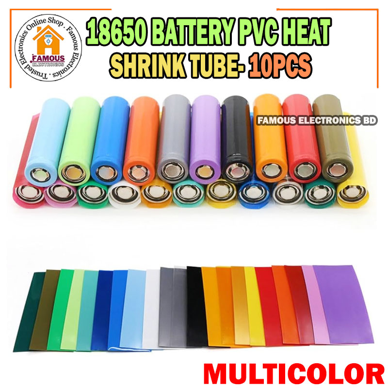 - 18650 Lithium-Ion Battery Wrap PVC Heat Shrink Tube Precut Insulated Film Protect Case Pack Sleeving.Length: 72mmWidth: 29.5mmThickness: 0.1mmShrinking Temperature: 80°CQuantity: 10 Pieces