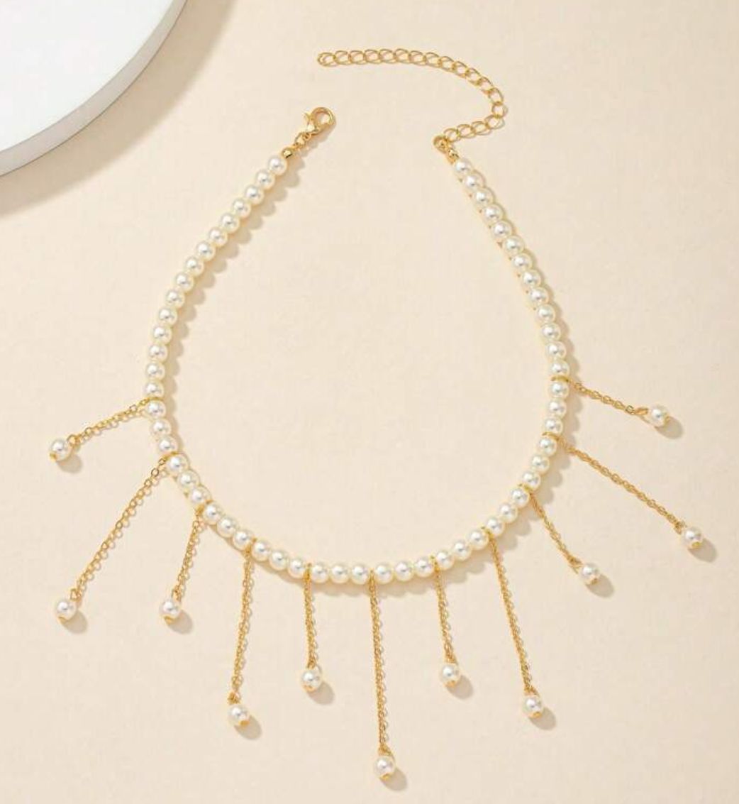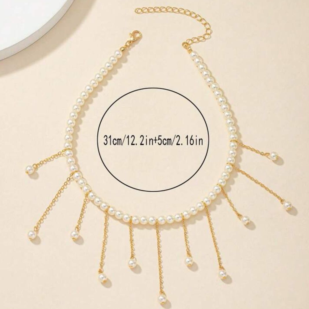 1pc Fashion Faux Pearl Tassel Pendant Faux Pearl Choker Necklace For Women, Suitable For Party, Daily Wear And Holidays