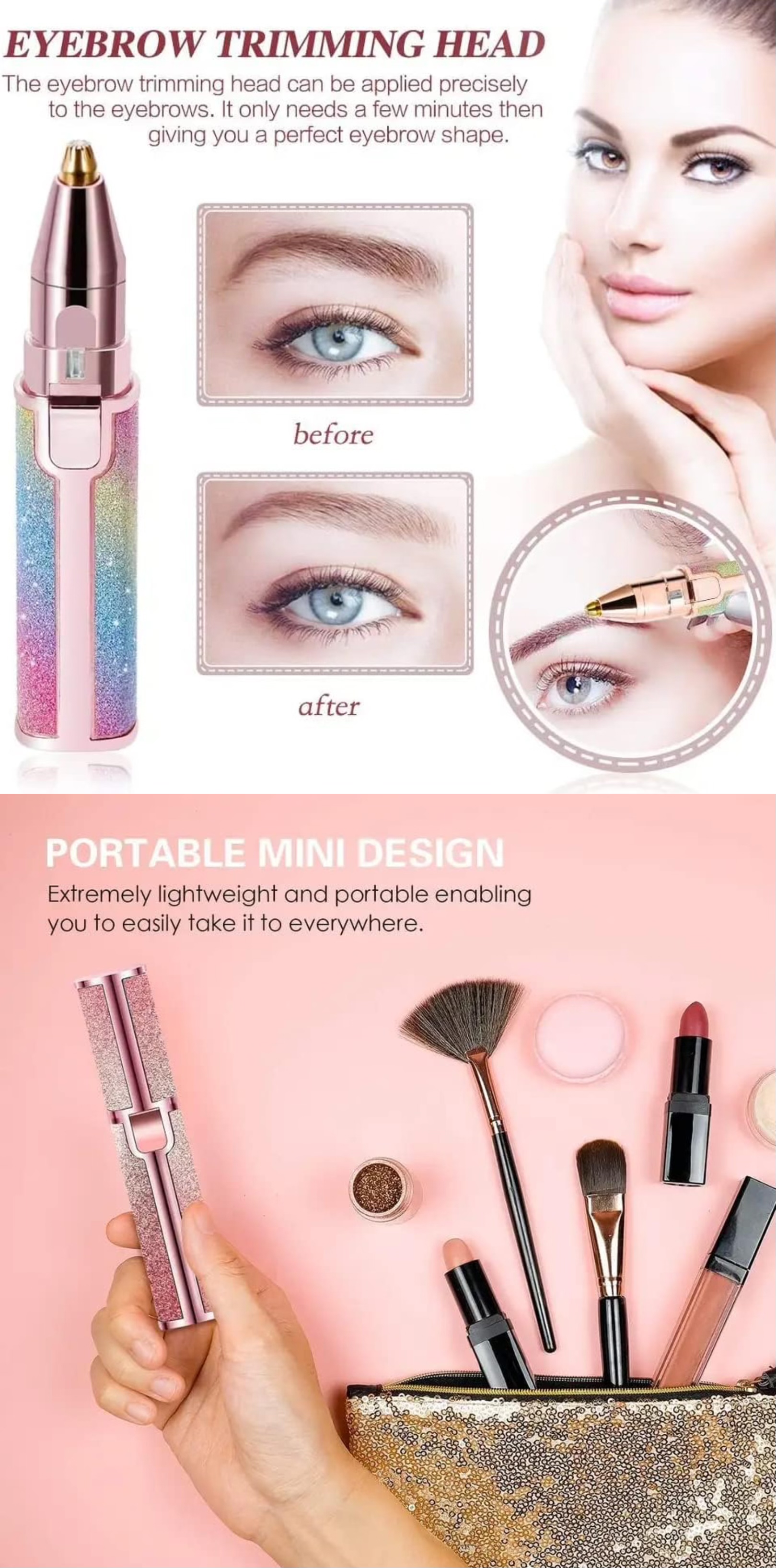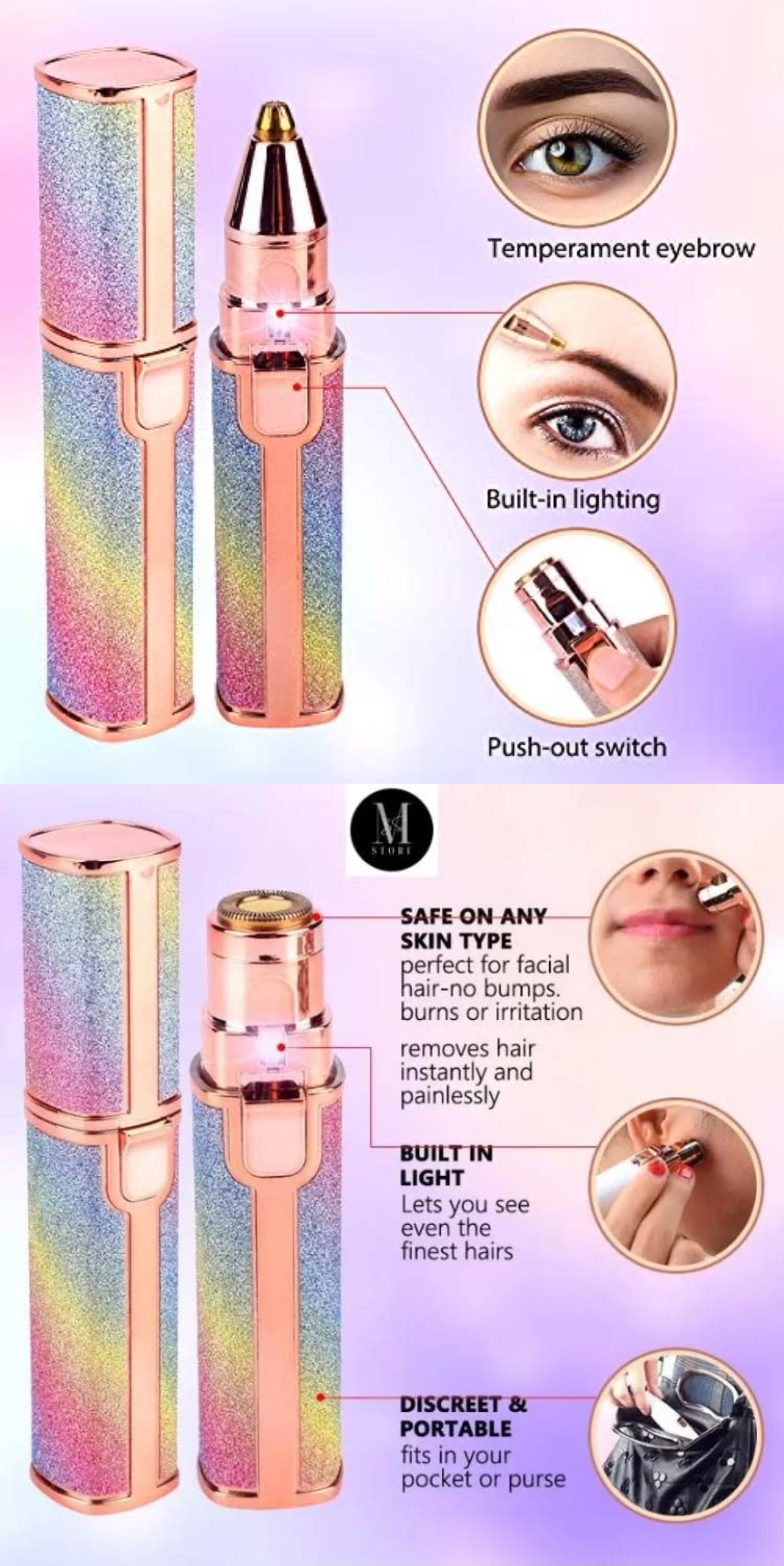 Introducing the 2-in-1 Eyebrow Trimmer and Face Hair Remover for Women—a versatile beauty tool designed for effortless grooming. This rechargeable device features a built-in light for precision trimming, allowing you to easily shape your eyebrows and remove unwanted facial hair from your lips, nose, and cheeks. Its waterproof design ensures safe use in the shower, making hair removal convenient and hassle-free. With a painless operation, you can achieve smooth, hair-free skin without irritation. Perfect for touch-ups and travel, this trimmer is your go-to solution for maintaining a flawless look.