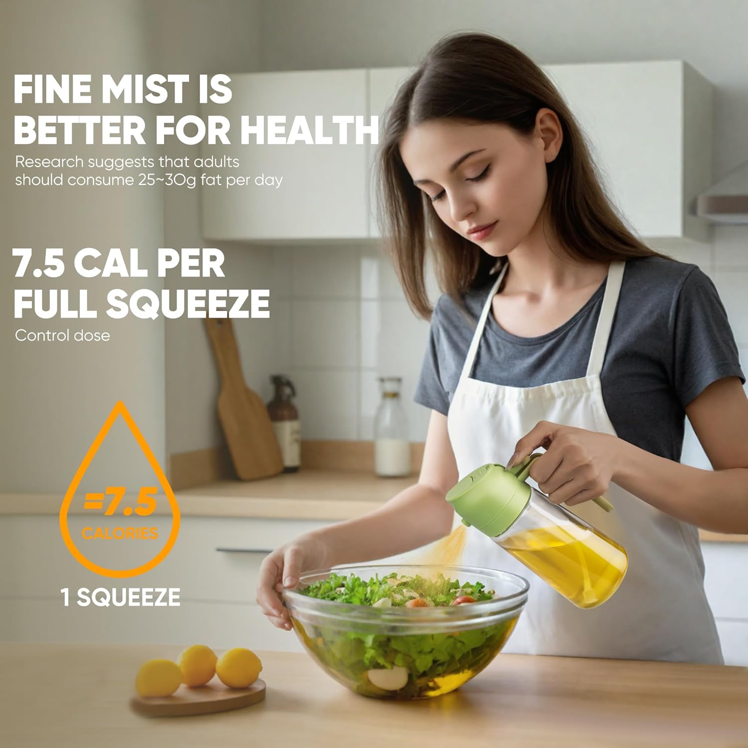 This spray oil bottle is made of glass+food-grade PP material. The intelligent design of the glass bottle body makes it easy to check the remaining amount of seasoning and identify the seasoning in the bottle.