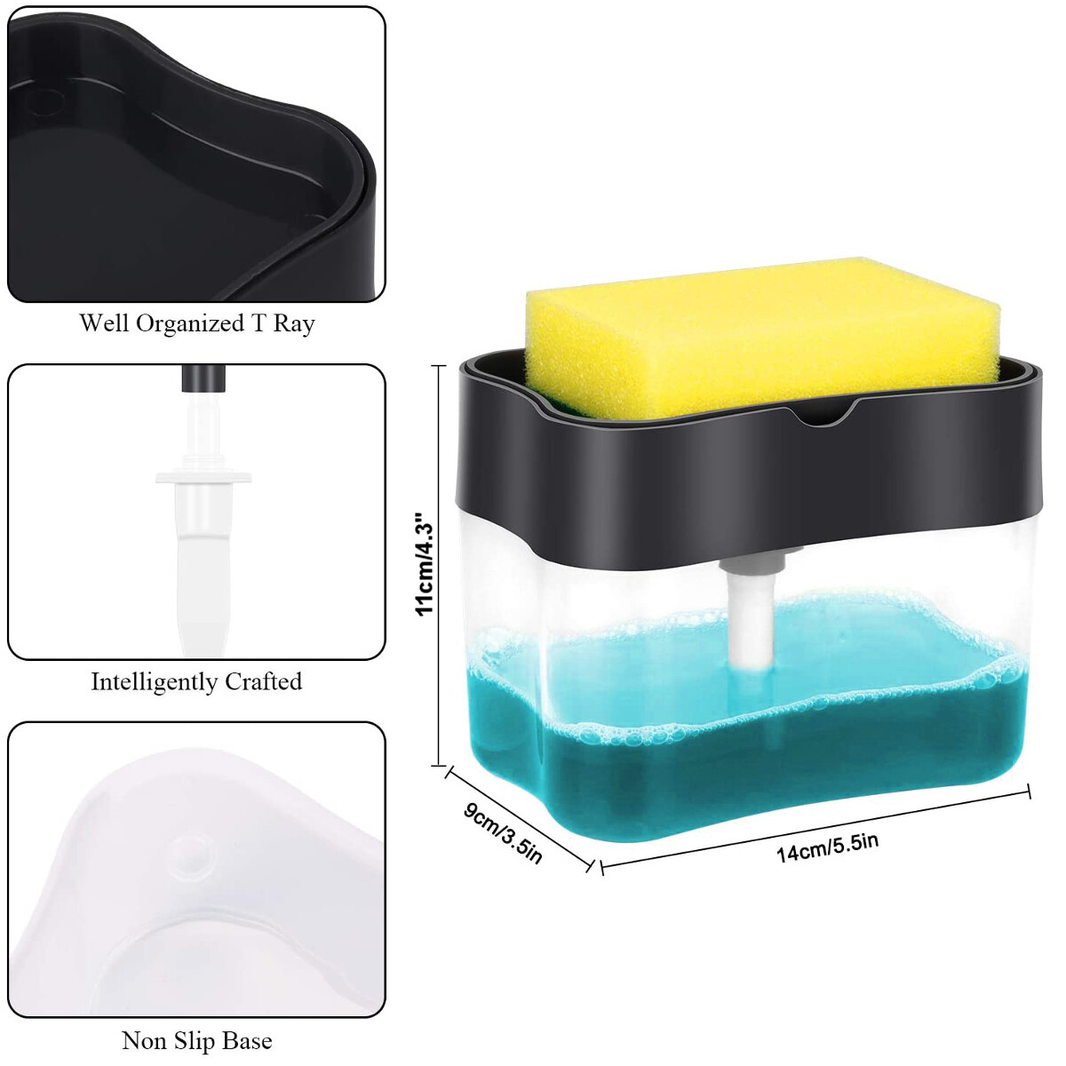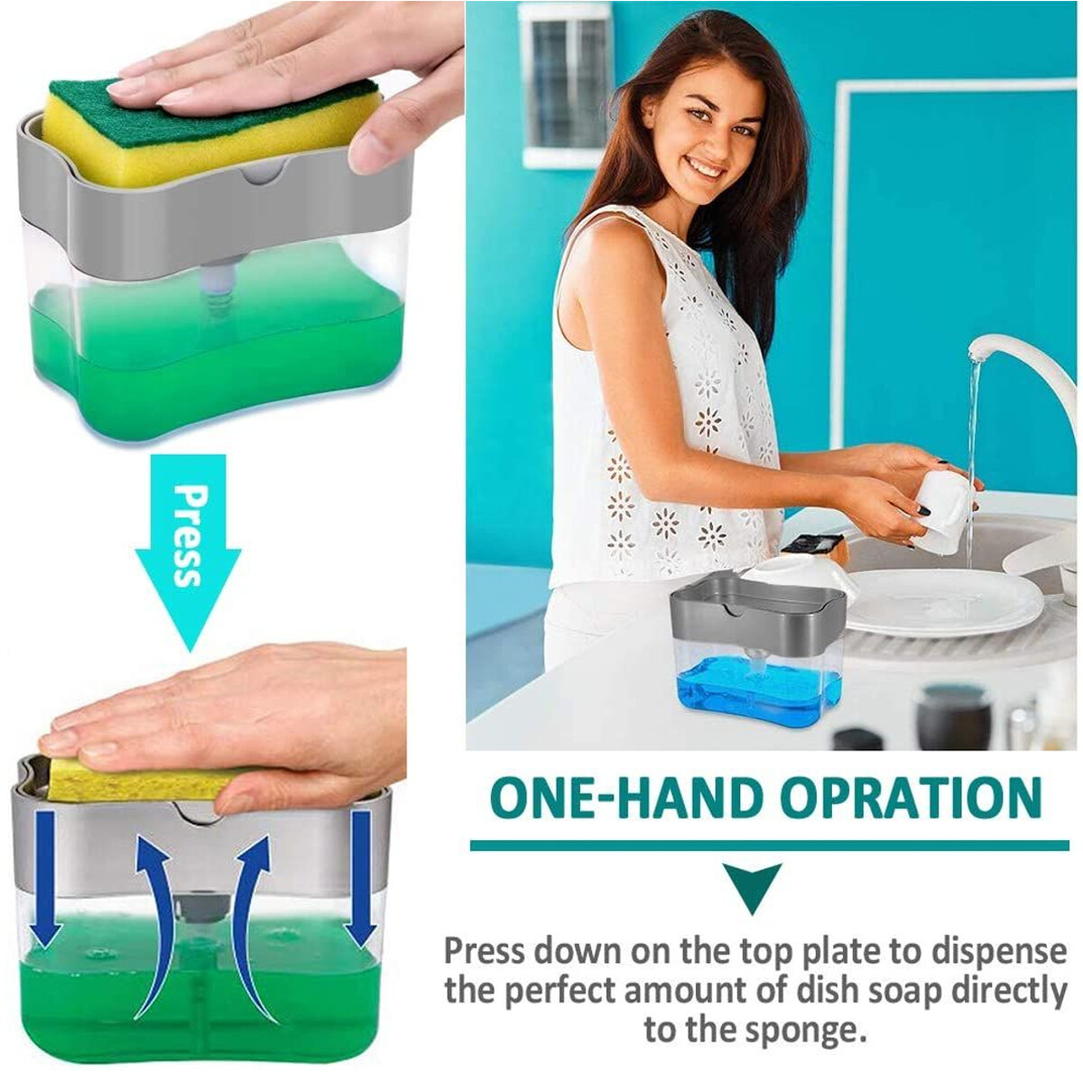 This soap dispenser is designed to be superior, made of unbreakable ABS plastic making it long lasting. Sink dispenser with attached caddy holds sponges, scrubbers, rags, scouring pads in one convenient place while keeping water off of kitchen counters. No Messy Spills, Dripping or Trailing. This soap dispenser is a perfect gift for mom. Make her day with this amazing soap dispenser! Dispense the perfect amount of soap onto the sponge, extremely easy to use. Container has a large capacity of 13 ounces so that you don’t need to refill it frequently. Works with all kind of liquid soaps.