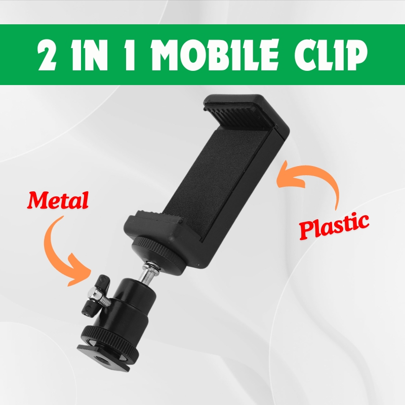 - and rigid lockup takes just a quick twist to fix.This tripod ball heads are much easier to carry and pack than tripods with pan-tilt heads.Tighten up the tripod ball head on tripod and then screw up the whole tripod on your camera.It can protect your cell Phone.Fix firmly and safety.Colour:BlackMaterial:aluminum alloy +ABSProduct clip size:7.2*2.5*3.5cmPackage Contents:1 x 1/4 inch hot shoe ball head1 x phone clip