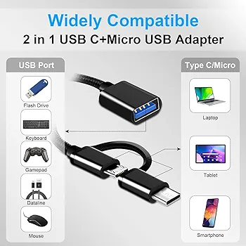 - Two in one USB adapter, USB C and micro USB dual interface design, with which you can connect all devices with USB ports such as flash drives, mice, keyboards, hard drives, etc. at any time.