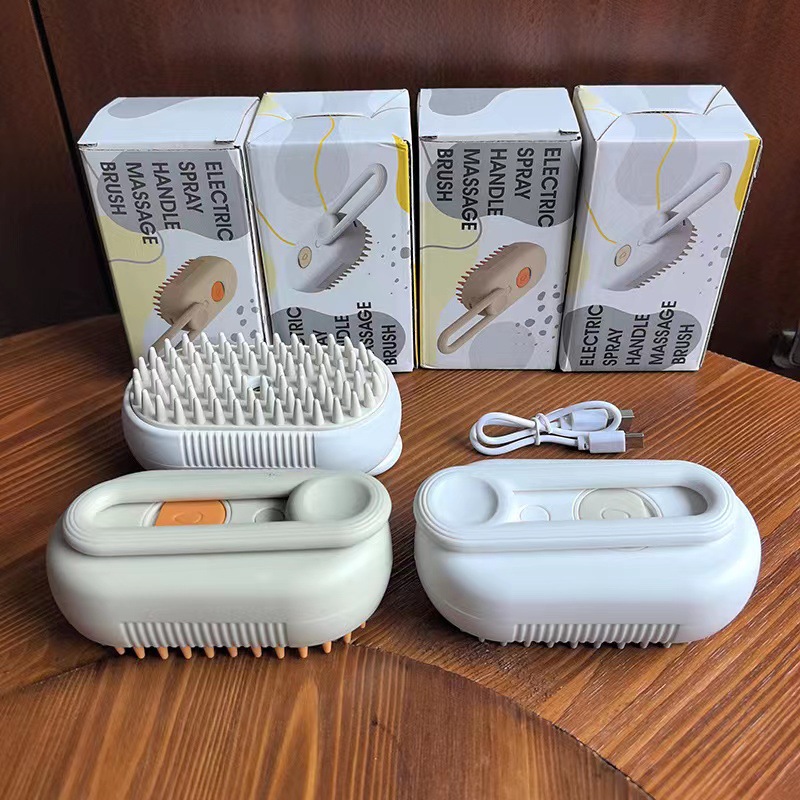 Overview 2024 Hot 3in1USB cable silicone cleaning bath hair removal with steam spray grooming silicone brush for cats Products Description