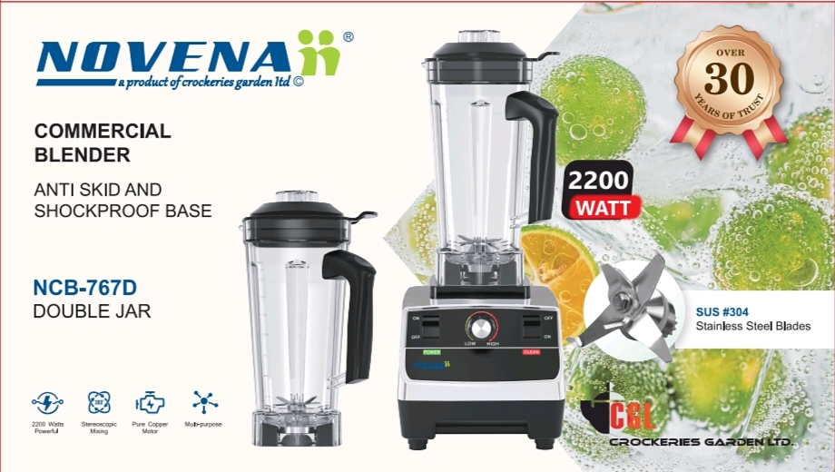 Model: Novena 2200 WATT 2 Liter commercial blender NCB-767D DOUBLE JAR