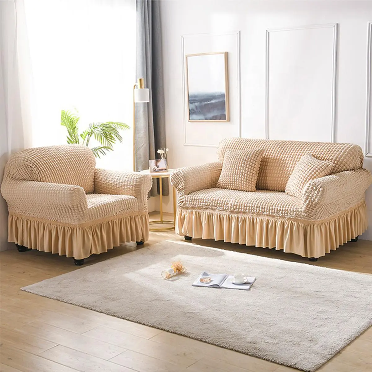 আমাদের সোফা, চেয়ার ও ডিভান কভারের বৈশিষ্ট্য সমুহ: 50+ টি কালার রয়েছে।এগুলো রাবার ষ্টীচ স্প্যনডেক্স কাপড় দিয়ে তৈরি। তাই ফিট হয় যেকোনো স্টাইল ও মাপের ছোফা, চেয়ার ও ডিভানে।আমাদের কাভারগুলো ডাস্ট রিফ্লেক্টিভ কাপড়। তাই এতে ময়লা খুব কম আটকায়। সারাদিন পর ঝাড়ু দিয়ে একটা ঝাড়া দিলেই সব ময়লা খালাস।১ বছর এর কালার গ্যারান্টি। আয়রন করার প্রয়োজন নেই।ড্রাই ওয়াস ও নরমাল ওয়াস দুটোই করা যাবে।চেয়ার ও সোফার কাভার গুলো আপনার ঘরের সৌন্দর্য অনেকগুন বাড়িয়ে দিবে।গিফট টেম হিসেবেও এটি দেয়া যাবে।আমরা এখন প্রতিদিন নিজের স্বাস্থ্য রক্ষা করার কথা ভাবছি এবং নিয়ন্ত্রণ নিয়ে চিন্তিত কিন্তু আপনার বাসার সোফা থেকে ছড়াতে পারে এই জীবাণু তাই আমরা দিচ্ছি আপনার সোফা এবং চেয়ার কে জীবাণু মুক্ত রাখার জন্য সোফাএবং চেয়ার কভার ।আপনার সোফা এবং চেয়ার প্রতিদিনের ব্যাবহারের ফলে ধুলো বালি, ময়লা, ব্যাকটেরিয়া, পোশা প্রাণীর আঁচড়ের দাগ/স্ক্রাচ ময়লার হওয়াটাই সাভাবিক কিন্তু আমাদের ষ্টীচ সোফা কভার লাগিয়ে নিলে আপনার সোফা বা ফার্নিচার টিকে রক্ষা করবে ধুলো বালি, ময়লা, ব্যাকটেরিয়া, হাত থেকে। আপনার ফার্নিচার বা সোফা গুলো কে রাখুন নতুনের মত। কিছুদিন পর পর কভার পরিষ্কার করে নিলেই হবে সাথে থাকবে আমাদের সোফা কভারের কালার এর ওয়ারেন্টি . Our Price : 5 Seater 4000/-