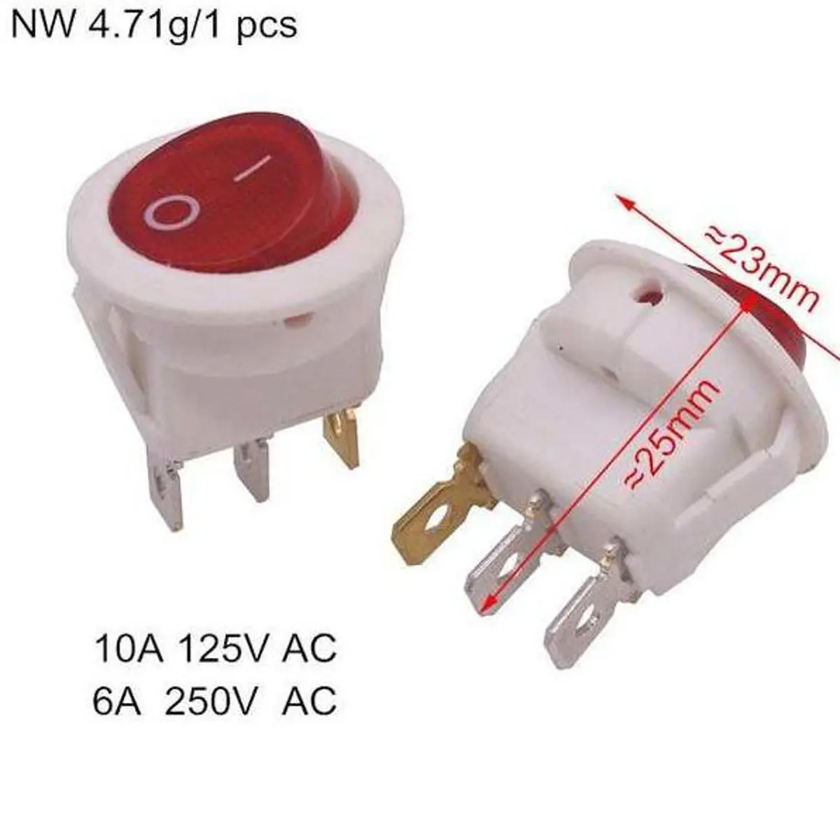 - 3 Pin Terminals, On Off Snap In Rocker Switch.