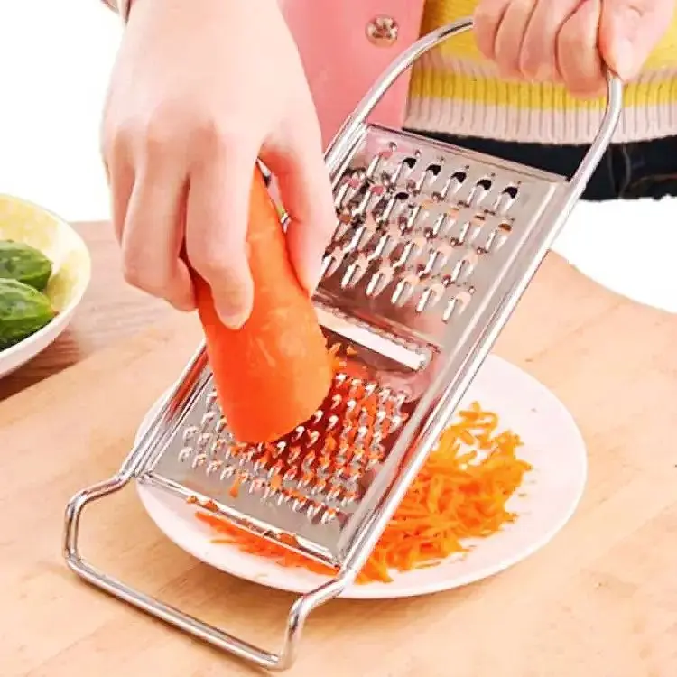 This 3 in 1 Stainless Steel Vegetable Grater is a must-have for any kitchen! Made of durable stainless steel, this hand grater is perfect for grating cheese, potatoes, and fruits. Its multifunctional design allows you to easily switch between three different grating options, making it a versatile tool for all your cooking needs. The sleek silver finish adds a touch of elegance to your kitchen, while the ergonomic handle ensures a comfortable grip. Whether you're a professional chef or a home cook, this vegetable grater is sure to make your life easier.