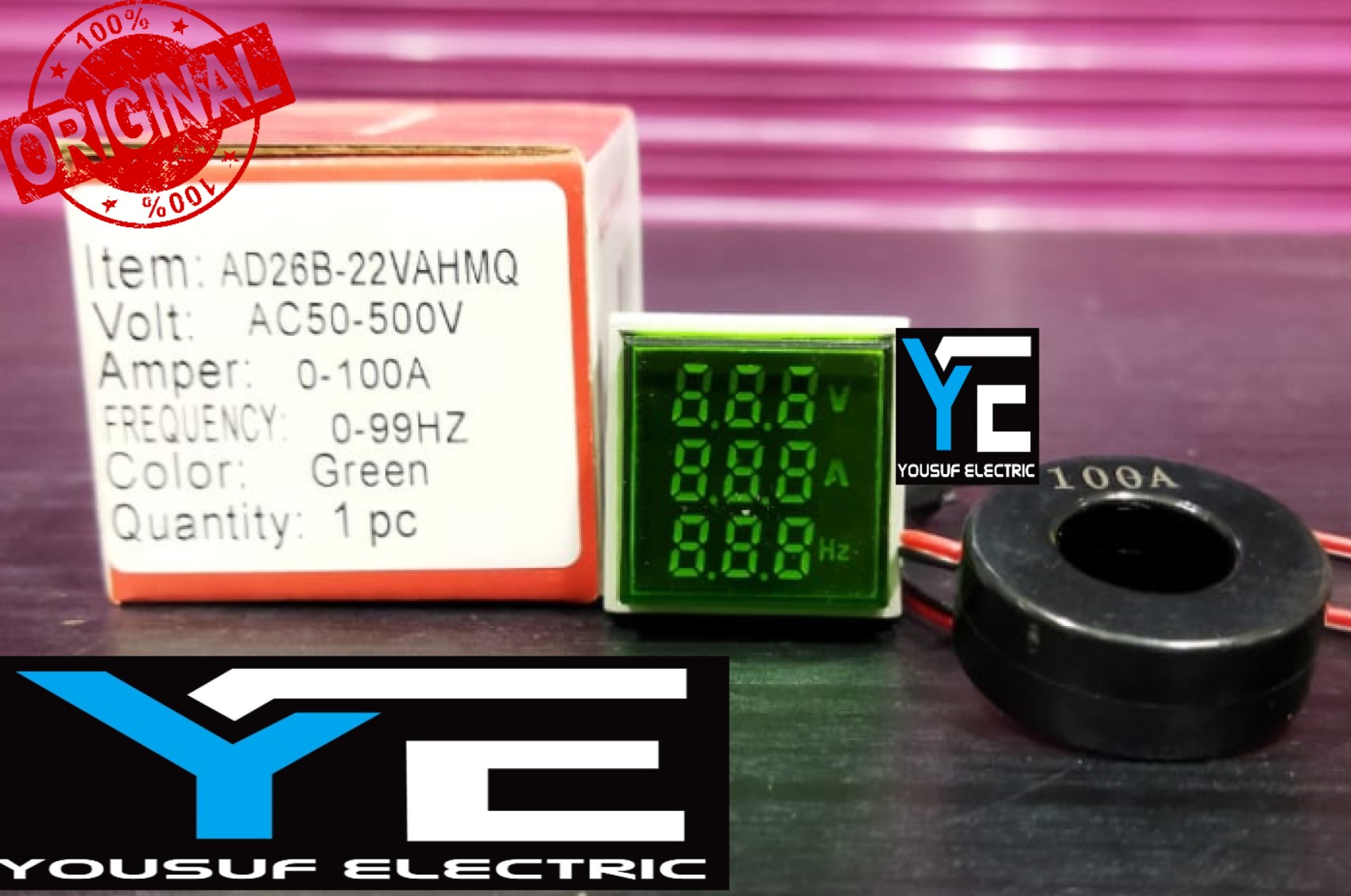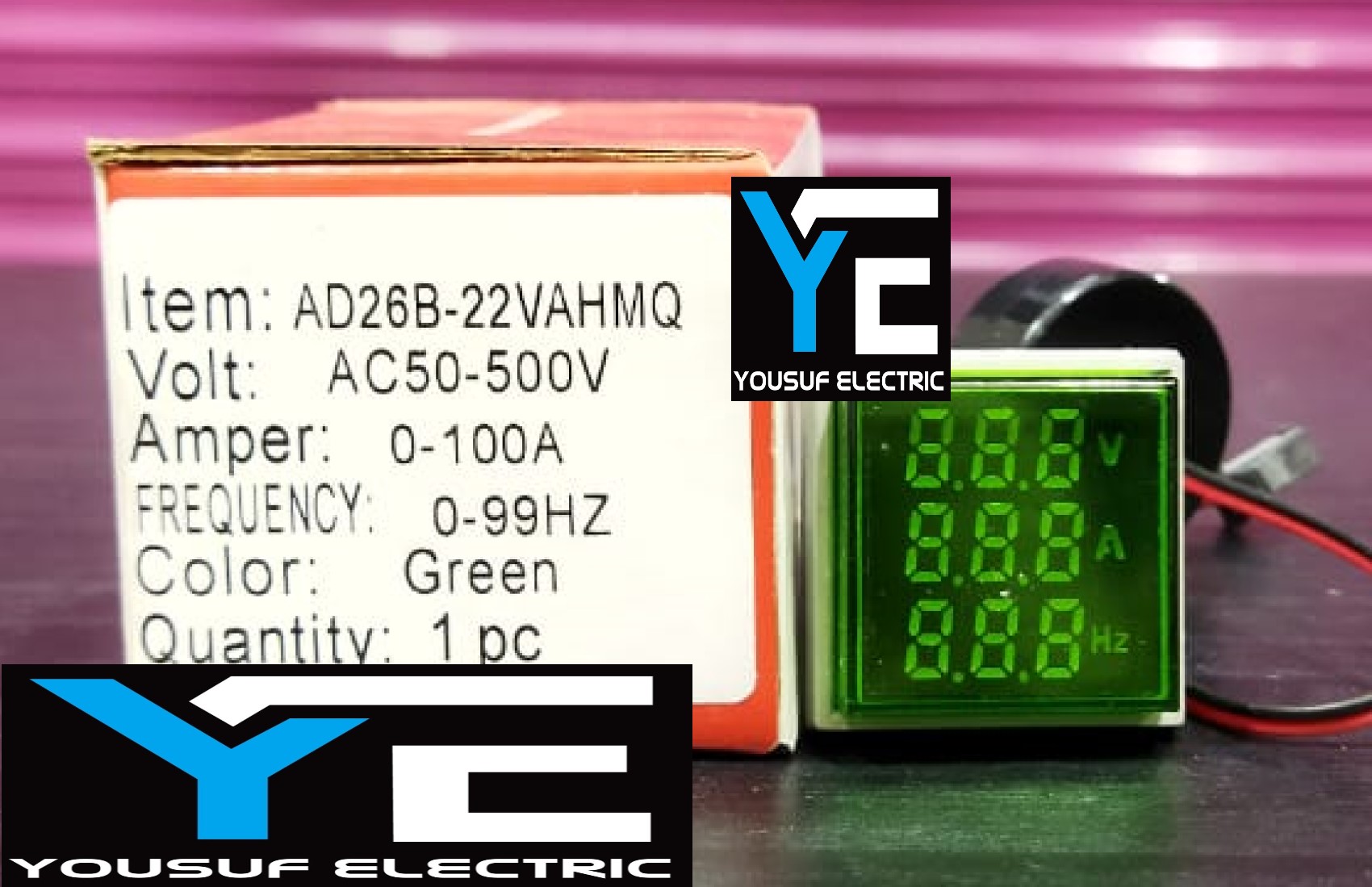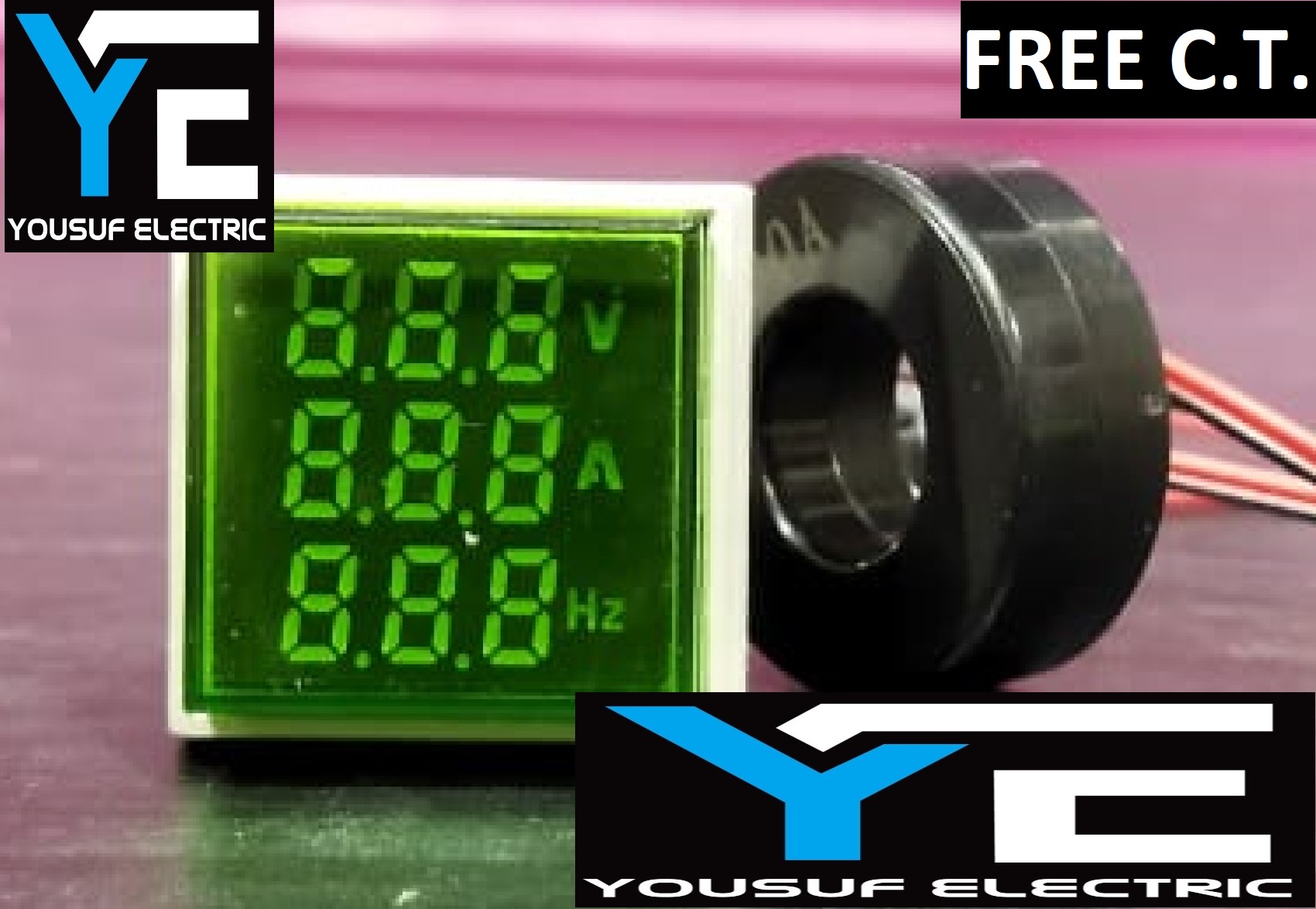 - Panel Mount 22mm Square Panel 3 in 1 AC 60-500V 0-100A 20-75Hz LED Digital Display Voltage Volt Current Ampere Amp Frequency Hertz Hz Meter