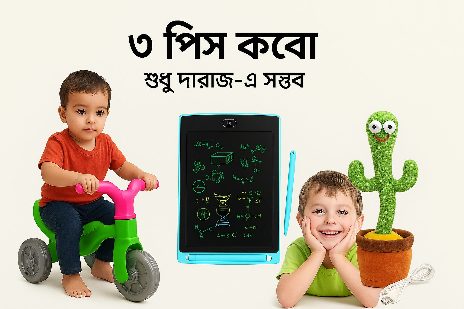 বেস্ট সেলার ৩ পিস কিডস কম্বো হলো শিশুদের আনন্দের সেরা উৎস। এই প্যাকে থাকছে তিনটি আলাদা ধরণের টয় যা শিশুদের সৃজনশীলতা বাড়াতে ও মানসিক দক্ষতা উন্নত করতে সাহায্য করবে। দারাজের সবচেয়ে বেশি বিক্রিত এই প্যাকটি শিশুদের জন্য নিরাপদ, টেকসই এবং একেবারে বাজেট ফ্রেন্ডলি। বিশেষ করে জন্মদিন, ঈদ, পূজা বা যেকোনো বিশেষ উৎসবে এটি উপহার হিসেবে দিলে শিশুরা দারুণ খুশি হবে।
