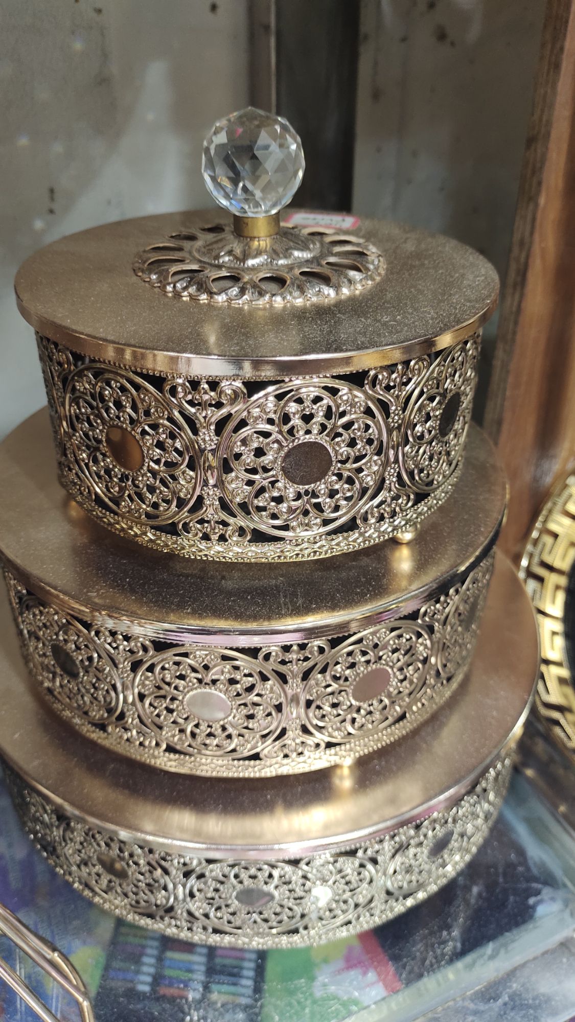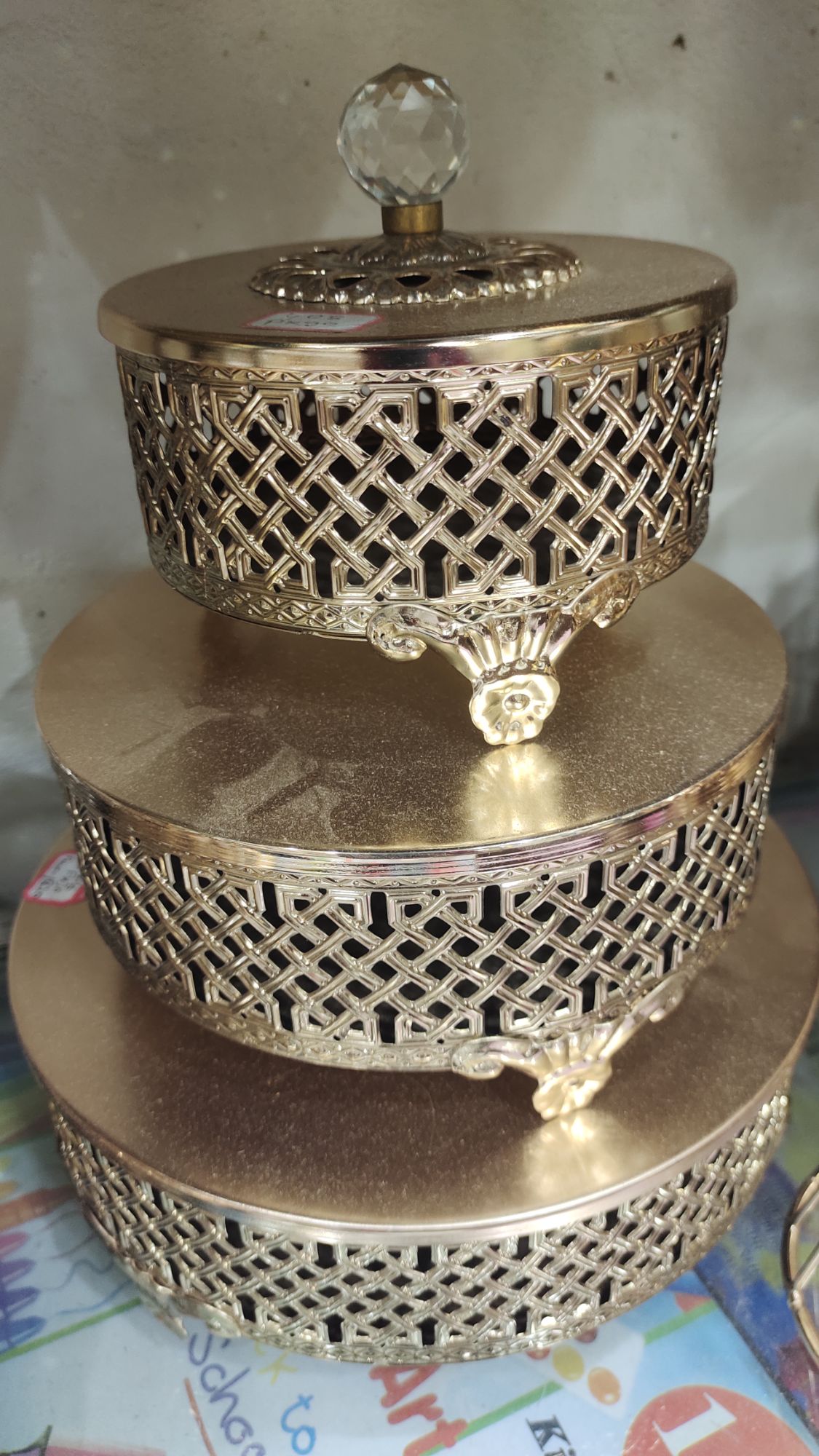 3 Pcs 1 Ser Golden Color Storage Set, Metal Body