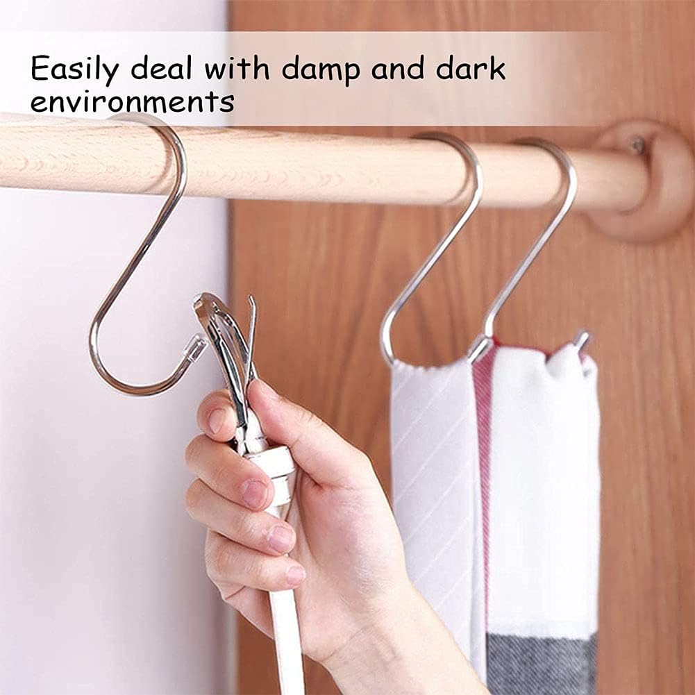 Hook with Unique Locking Clip for Hanging Designs. With its unique locking clip, this advanced S-shaped hook sets a new standard for safety and functionality. Say goodbye to the worries of items falling off during strong wind hanger hooks quality meets durability and functionality. Meticulously crafted from premium-grade steel and coated with rust-resistant paint, this hook is built to withstand the test of time. -The heavy duty S hooks is 3.5 inch in length, the diameter of openings is 1 inch, and the locking side of hooks can used on rod with 0.43 inch/ 1 cm diameter With these s hooks for hanging, you can hang pots, pans, and utensils with ease, keeping your kitchen space organized and within arm's reach. Hanging scarves, belts, ties, and handbags, maximizing your closet space. Hanging beautiful flower baskets, lanterns, wind chimes, and bird feeders, adding a touch of charm and elegance to your outdoor sanctuary.