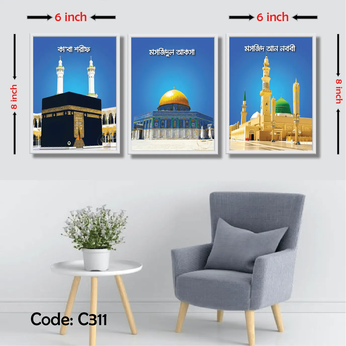 3 pcs Makka, Madina, Al aqsa Combo Wallmate set for Home Decoration. Wall Decoration for Home and Office Multicolor