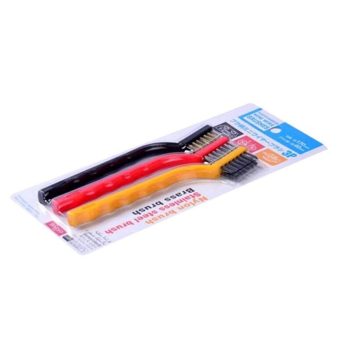 Product details of 3 Pcs Wire Brush Set includes Steel , Brass &Nylon Brush Cleaning Metal & Rust cleaners
