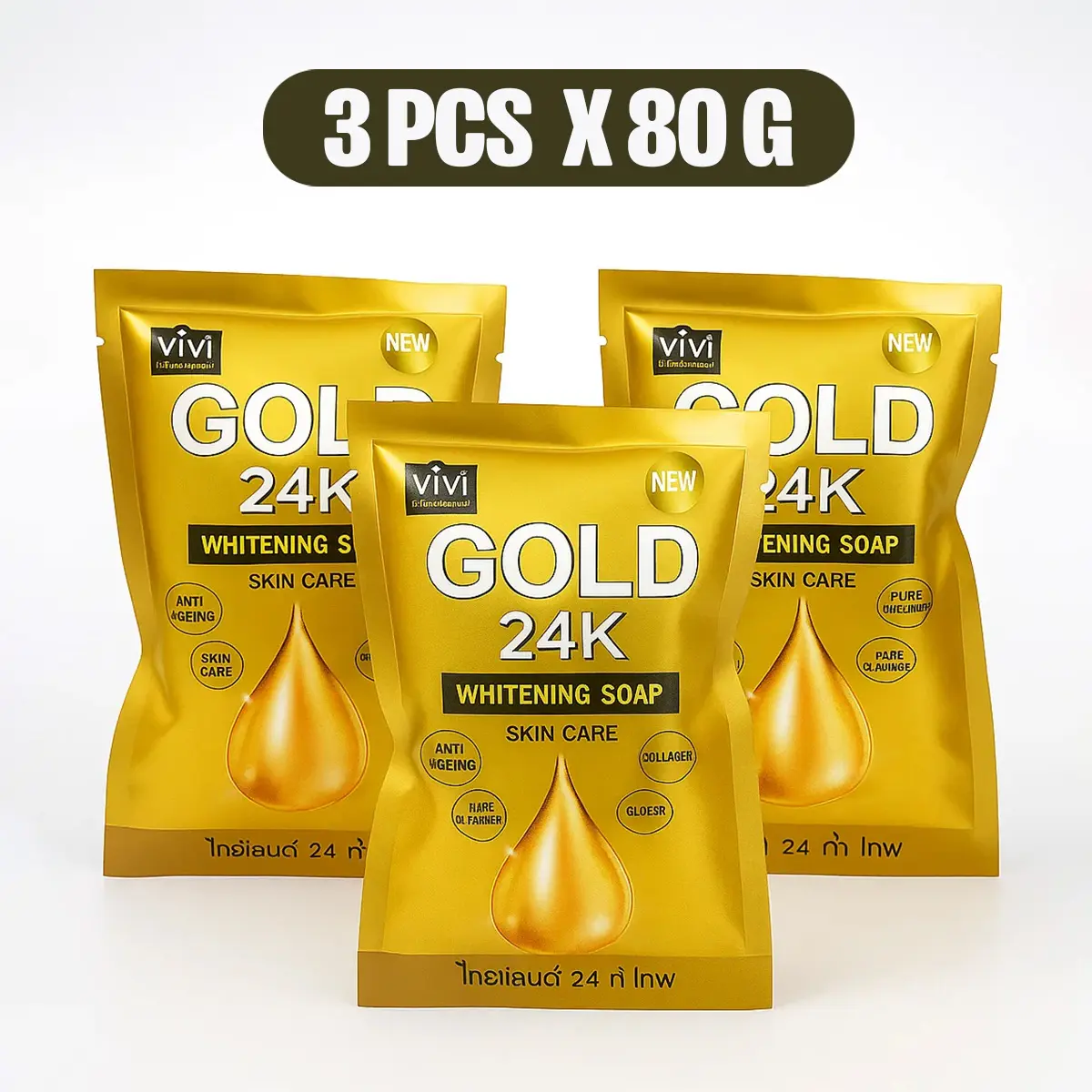 Introducing the luxurious 3 Pieces Gold 24k Soap bar, each weighing 80×3 grams, perfect for baby personal care. Crafted with the finest ingredients, this bar soap provides gentle cleansing and nourishment for delicate skin. The infusion of 24k gold adds a touch of luxury, leaving the skin feeling soft and pampered. Ideal for daily use, this soap bar is a must-have for baby's bath time routine, ensuring a gentle and soothing experience.