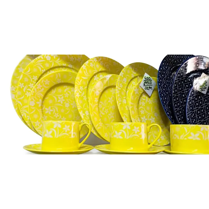 32 pieces Ariane Brand dinner set for gift and home decoration- 6 Dinner Plates, 6 Half Plates, 1 Rice Dish, 1 Curry serving bowl, 6 Soup Bowl, 6+6 coffee cup + saucer(Yellow630)