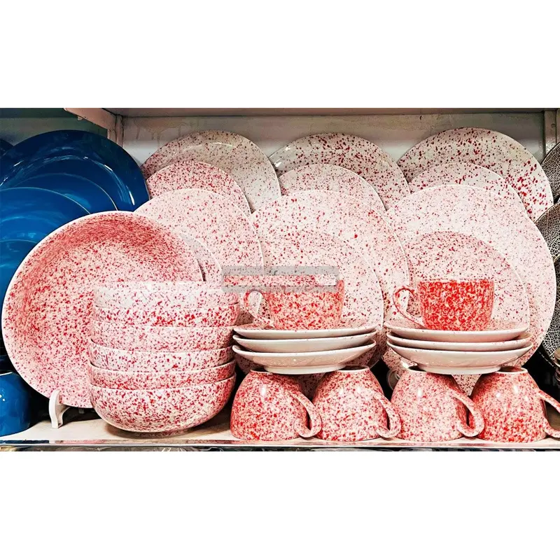 32 pieces dinner set for gift and home decoration-6 Dinner Plates, 6 Half Plates, 1 Rice Dish, 1 Curry serving bowl, 6 Soup Bowl, 6+6 coffee cup + saucer(Multicolor)
