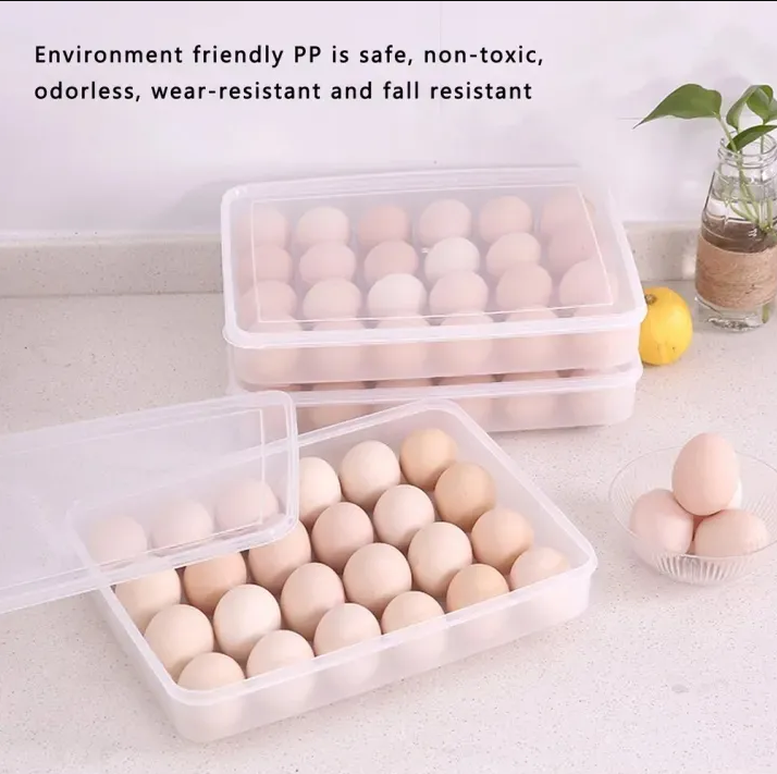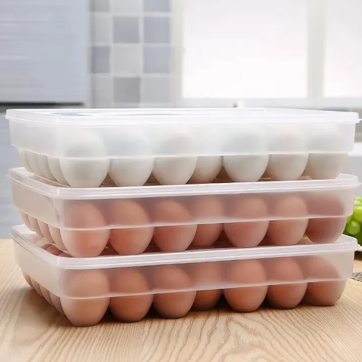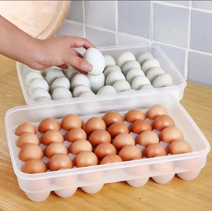 Organize your refrigerator efficiently with the 34-Grid Single Layer Egg Storage Container with Lid. Designed to store and protect up to 34 eggs, this container ensures freshness and safety. The compact design and sturdy lid make it perfect for stacking, saving valuable space in your fridge. Its durable and transparent build allows you to check the egg count at a glance.
