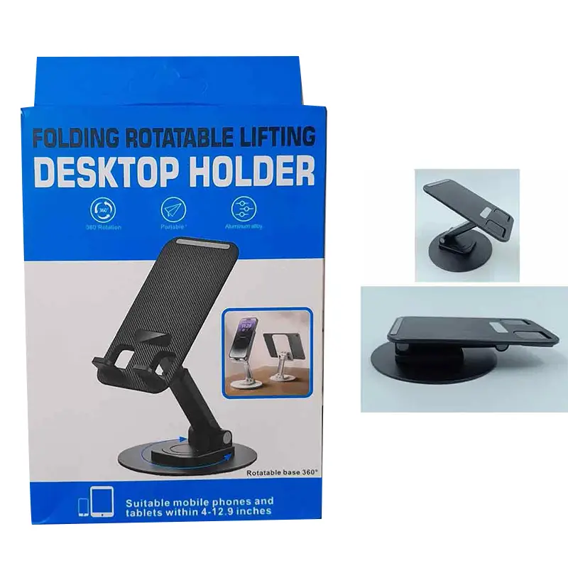 360° Folding Metal Mobile Phone Desktop Holder Tablet Desk Stand Portable 360 Degree Rotation & Foldable Phone Stand Holder360-degree Rotation Phone StandWith a 360-degree rotation design, you can adjust the device's orientation at any time, allowing you to get a more comfortable view and height. Reduce how often you look down at your phone screen to avoid back and neck injuries.Convenient DesignThe mobile phone bracket is reserved for the mobile phone charging port, effectively avoiding the problem of data cable folding when charging. With a double folding design, the product can be folded up to 0.98 inches thick and easily fit into pockets, backpacks, and tote bags and accompany you anywhere.Adjustable Height & AngleFeaturing adjustable height (0-1 inches), the cell phone stand allows for comfortable hands-free use when playing games and watching videos. It helps to fix your posture and reduce neck strain.Wide CompatibilityThe universal phone stand is compatible with all cellphones between 3.5 to 10.7 inches even with a case (up to 0.75 inches in thickness).Package included: 1 x 360° Rotatable Foldable Mobile Phone Stand Holder Steel Alloy + ABS Features