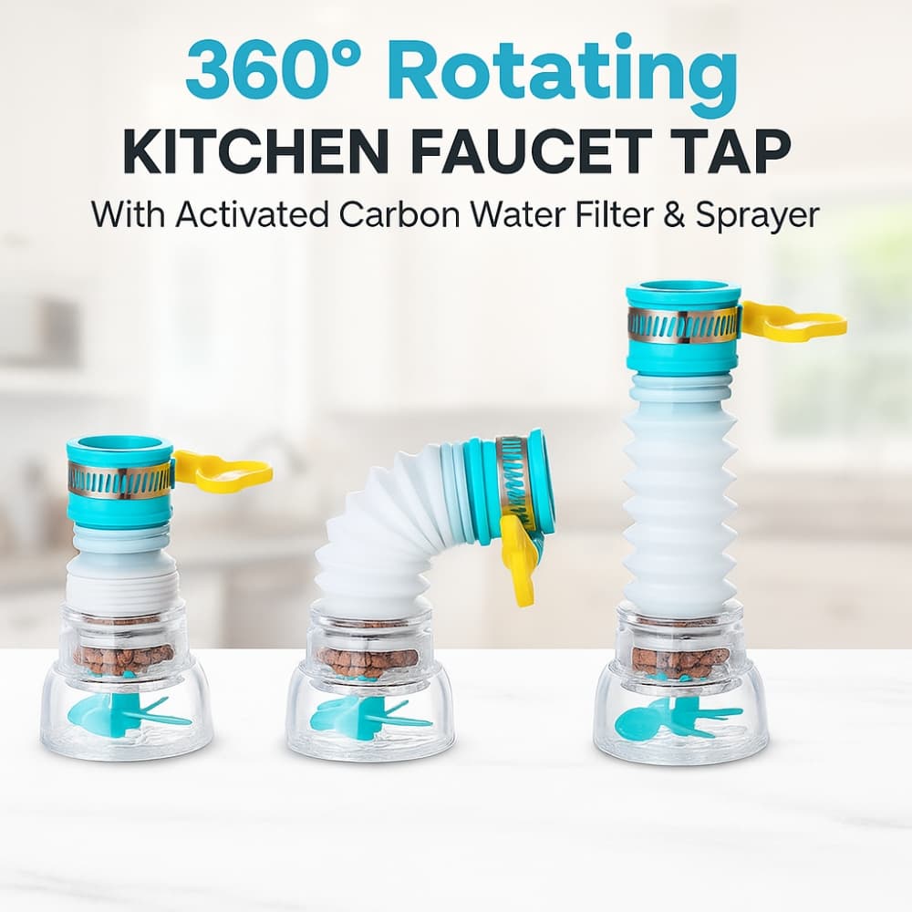 360° Rotating Kitchen Faucet Water Tap with Activated Carbon Water Filter and Sprayer