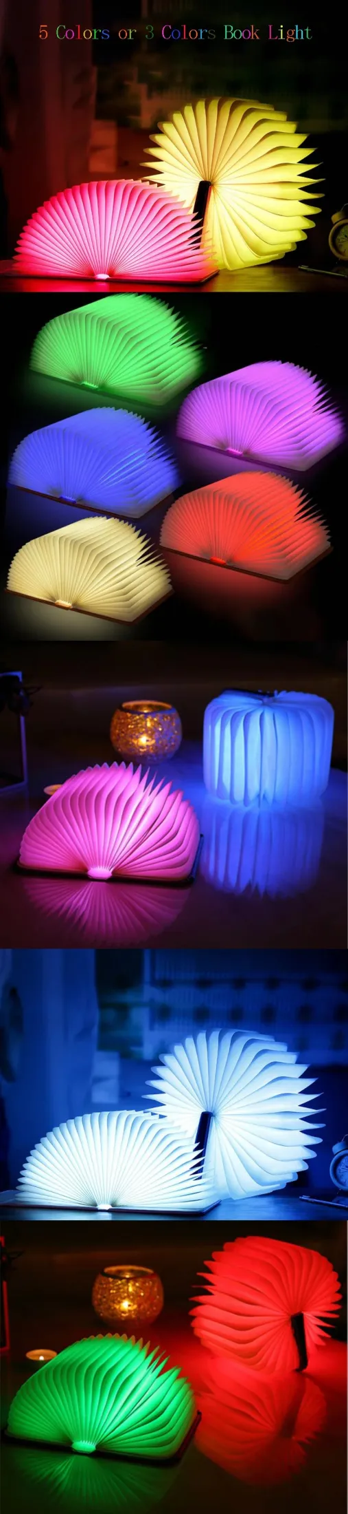 - 3D LED Night Light Book RGB 5 colors USB Rechargable Folding Book Light Wooden Table Lamp Home Desk Decoration