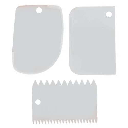 This cake scraper sets feature with 3 piecesof cream scraper in different specification to meet different needs. The flatcutter can be used for cutting dough and scrape off the food left on the table.And the serrated one for scraping and decorating the cake. This dough cuttersets are made of exceptionally durable and food grade PP material, safe,non-toxic, and durable in use. Food safe premium quality, best quality materialchosen to ensure your health. This plastic cream smooth tool is non-stick, youcan easily get every scraps dough, batter and cream off mixing bowls, withoutleaving any residue. Smooth surface makes it easy to clean with water. Thiscake smooth tool design with hanging hook, which is easy and convenient tostorage. Reduce prep time, you'll no longer have to struggle with kitchenmesses taking over your kitchen sink. This scraper tools are perfect for breadand pizza dough, cake batter, fondant, cream, icing and virtually anything thatneeds to be prepared inside a kitchen bowl or a food processor, and also can beused to scraps water off counters.