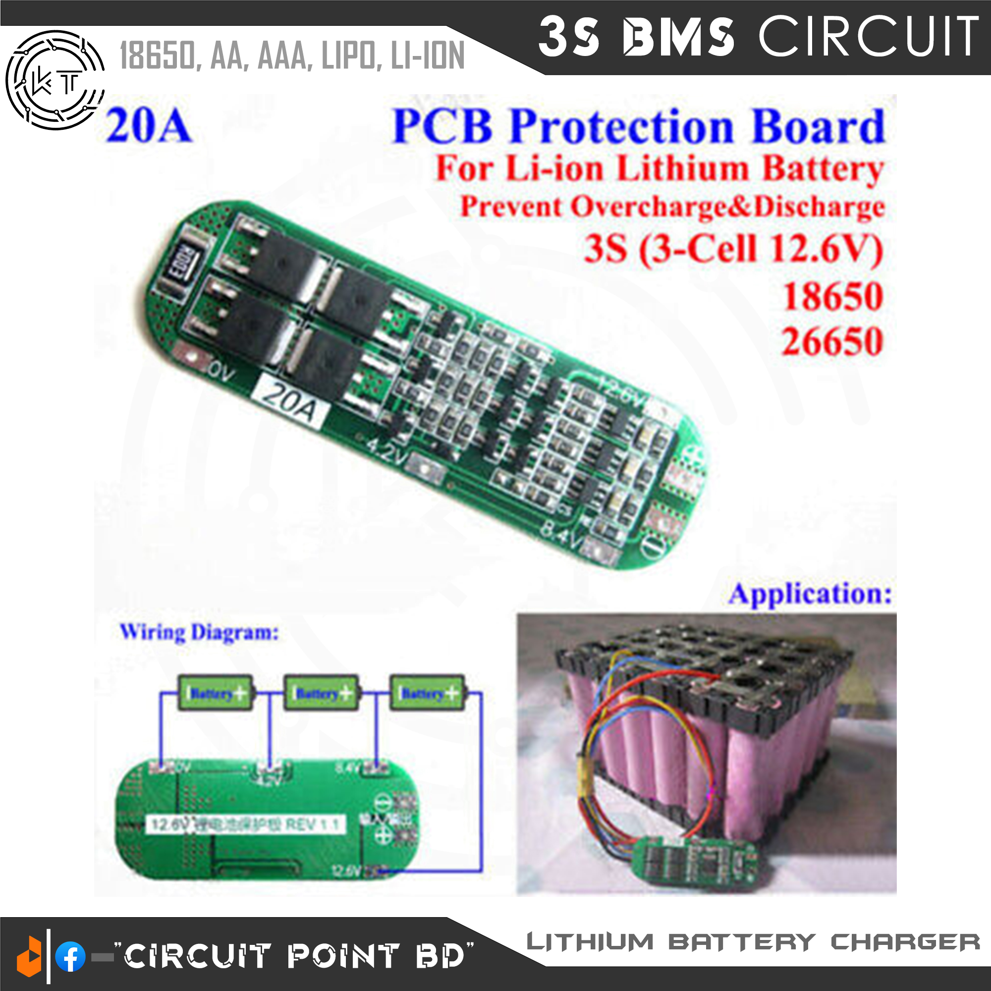 - 3S 11.1V 12.6V 20A 18650 lithium battery protection board