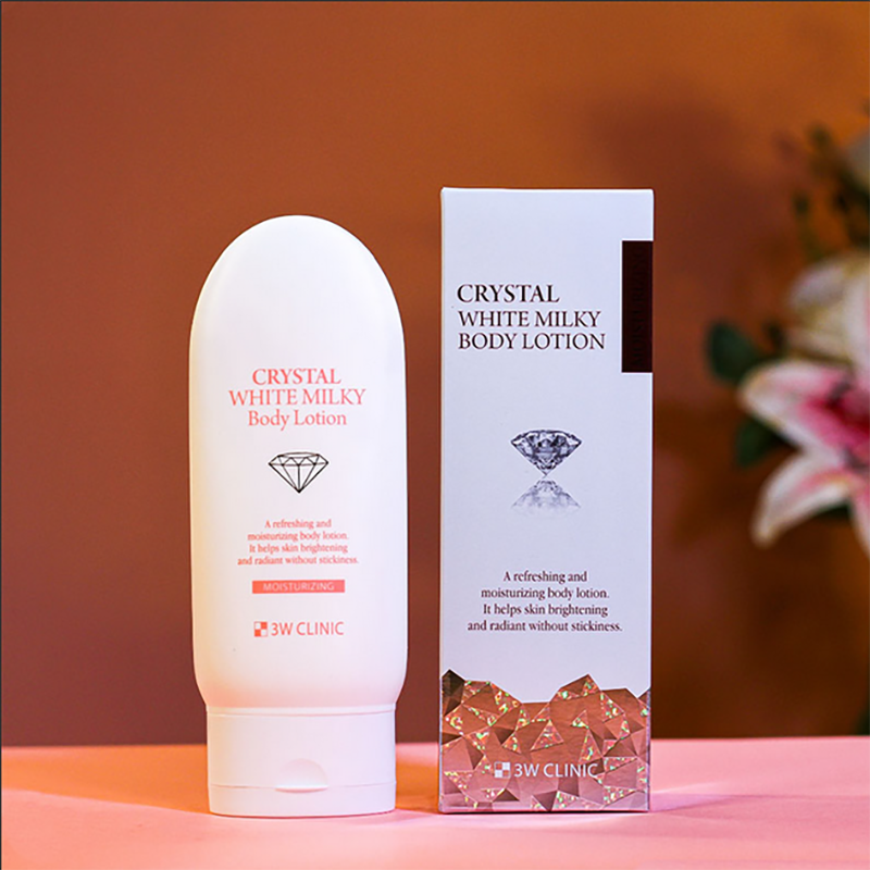 3W CLINIC Crystal White Milky Body Lotioncontains four plant extracts bamboo, the root of the Korean angelica, ginseng and Ganoderma.