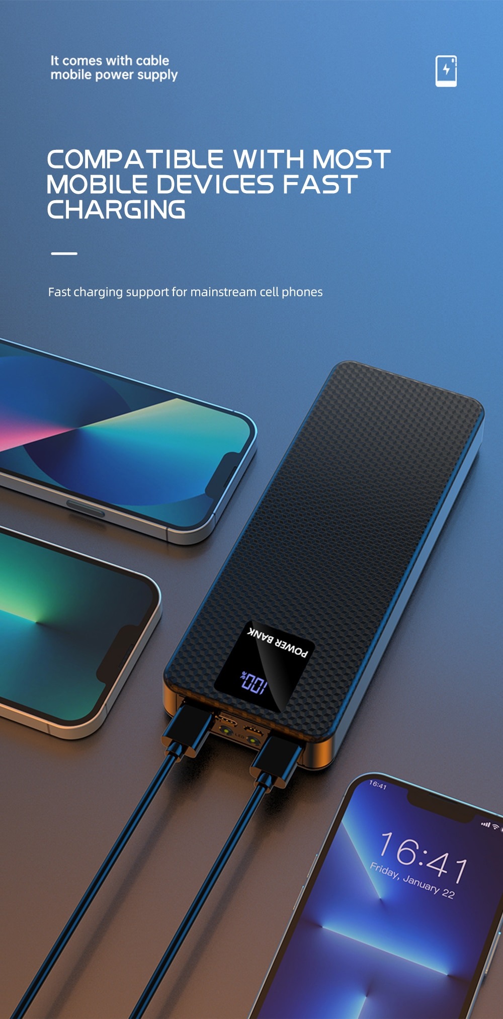 4 Cable Fast Power Bank Box Kit Flashlight USB Type C 18650 Battery Storage Box Charger 22.5W For Mobile Phone and others- Battery Not included