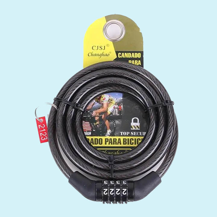 Suitable for locking your bike, motorbike, electromobiles, etc. Come with fixed 4 digital password, safe to use. (You should remember the original code, which print it in the red label, becauseit can NOT be changed.) Top grade wirerope, firm and durable. Ideal bicycle lock and anti-theft lock. Steel Wire , self-coiling 8mm cable. Supplied with initial password card.