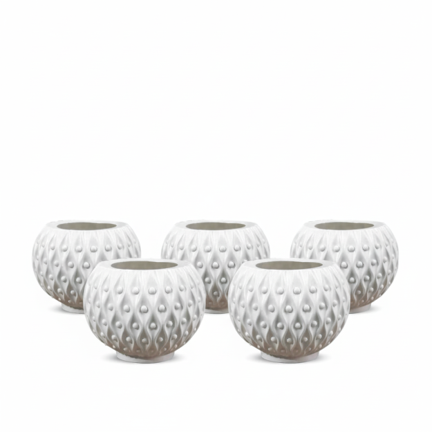 - Enhance your home or garden with this set of 5, 4 Inch White Ball Pot. These pots are perfect for small plants, succulents, and seedlings. Their classic white color complements any decor, adding a touch of elegance to your space. Made from durable materials, these pots are designed to withstand the Bangladeshi climate. Whether you're a seasoned gardener or just starting, these pots are a must-have for your plant collection. Think of these as টবের ছবি (Tuber Chobi) or ছোট টব (Choto Tob) for your প্রিয় গাছ (priyo gach) – beloved plants. This tub is for garden.